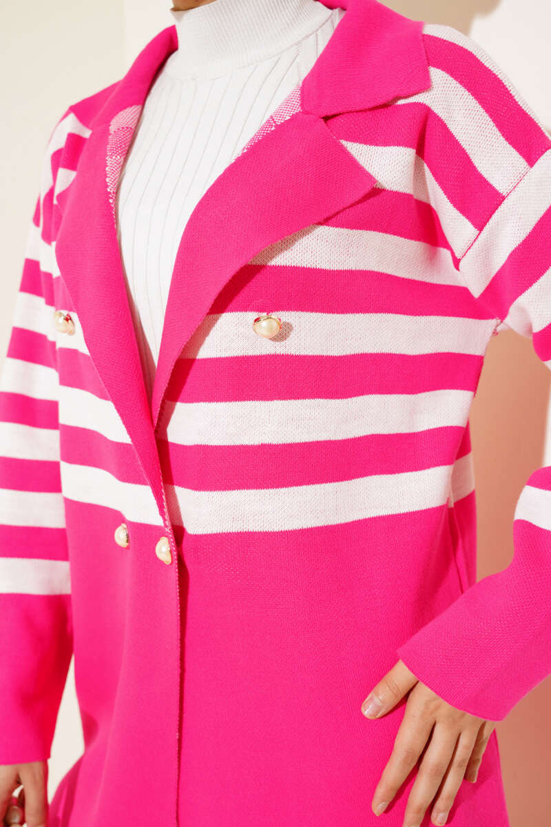 Baklava Desen Düğmeli Triko Hırka İkili Takım Bordo