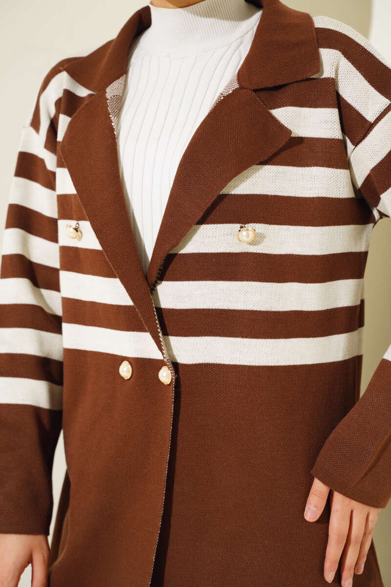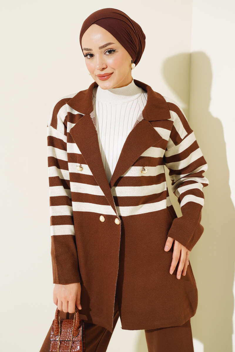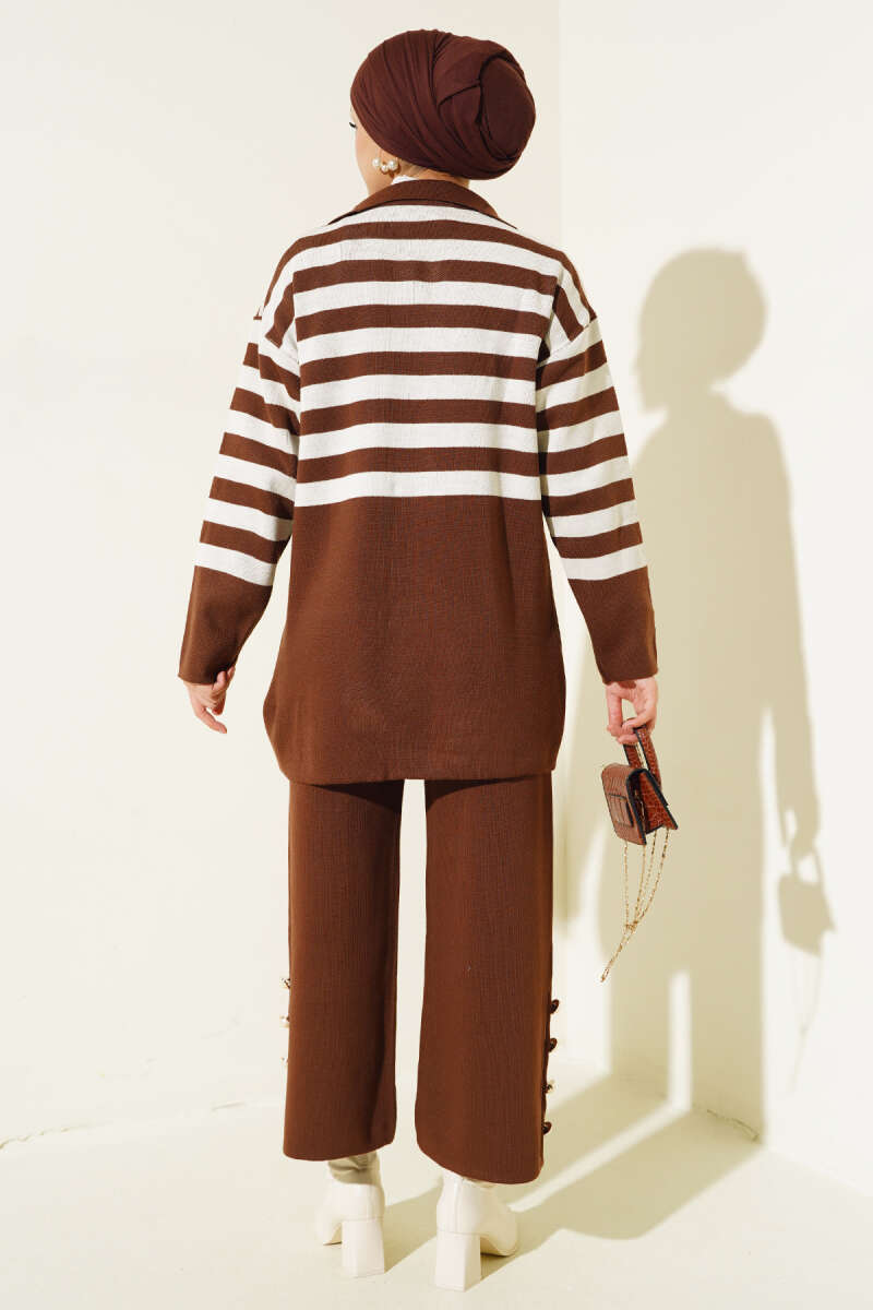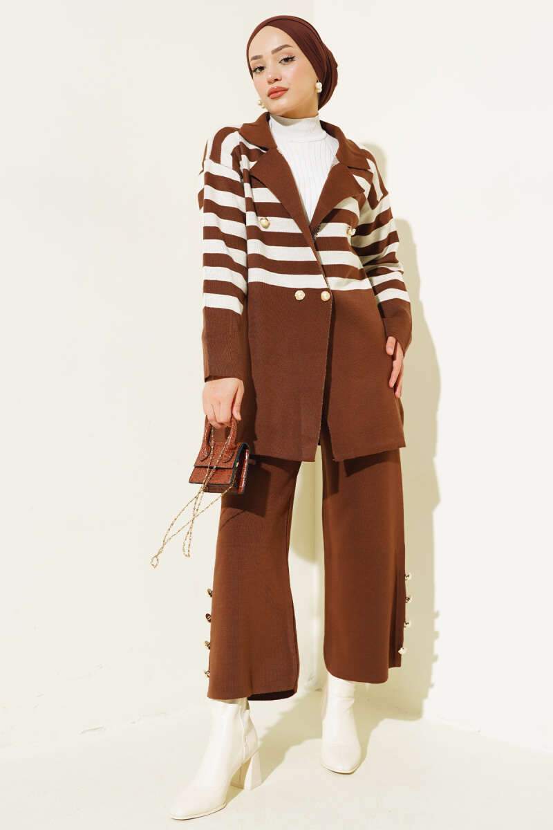 Çiçek Motifli Triko İkili Takım Kahve