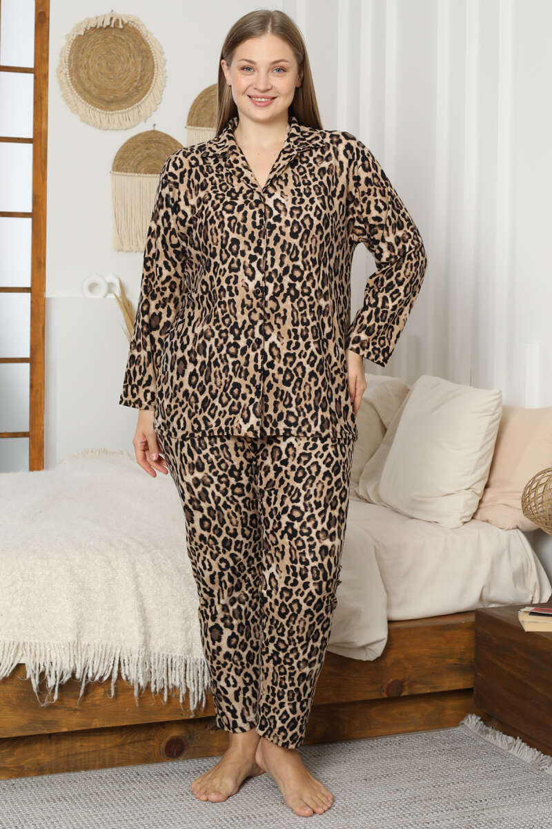 Kruvaze Yaka Süet Desenli Büyük Beden Pijama Takımı Leoapar