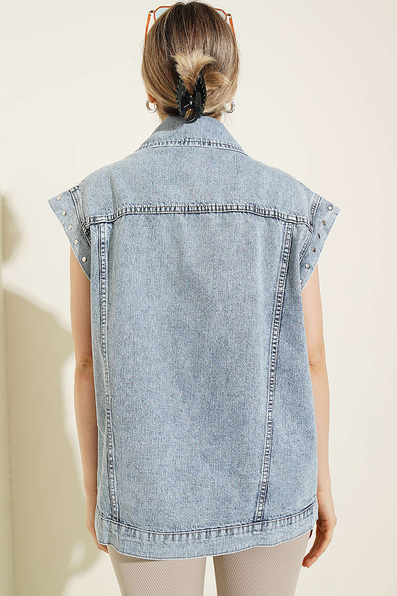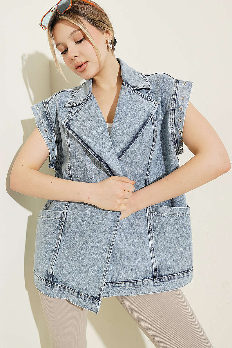 Kruvaze Yaka Zımbalı Kot Ceket Kot Mavisi