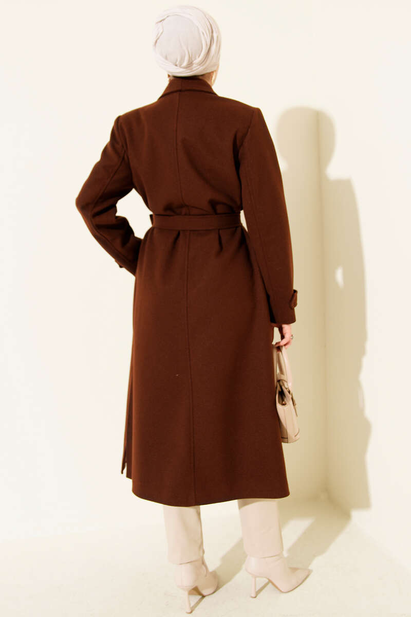 Omuz Apoletli Atkılı Kaşe Kaban Kahve