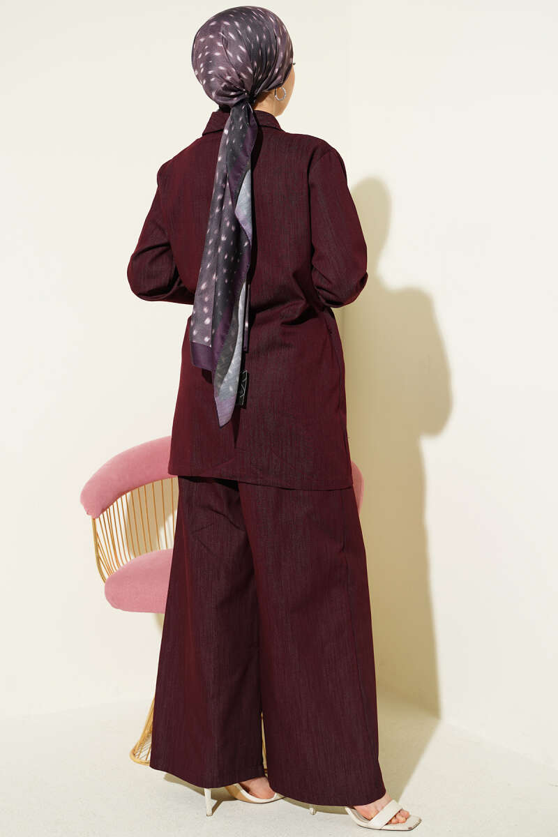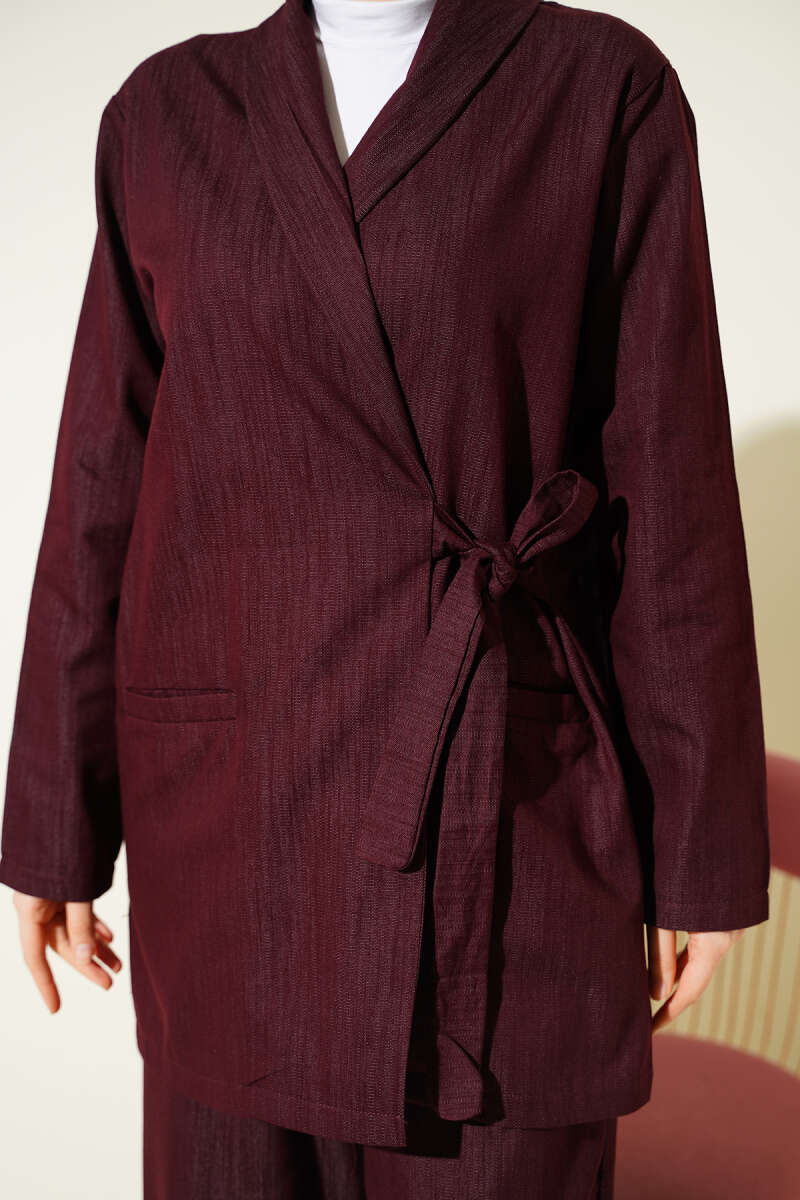 Kruvaze Yandan Bağlamalı Kot İkili Takım Bordo