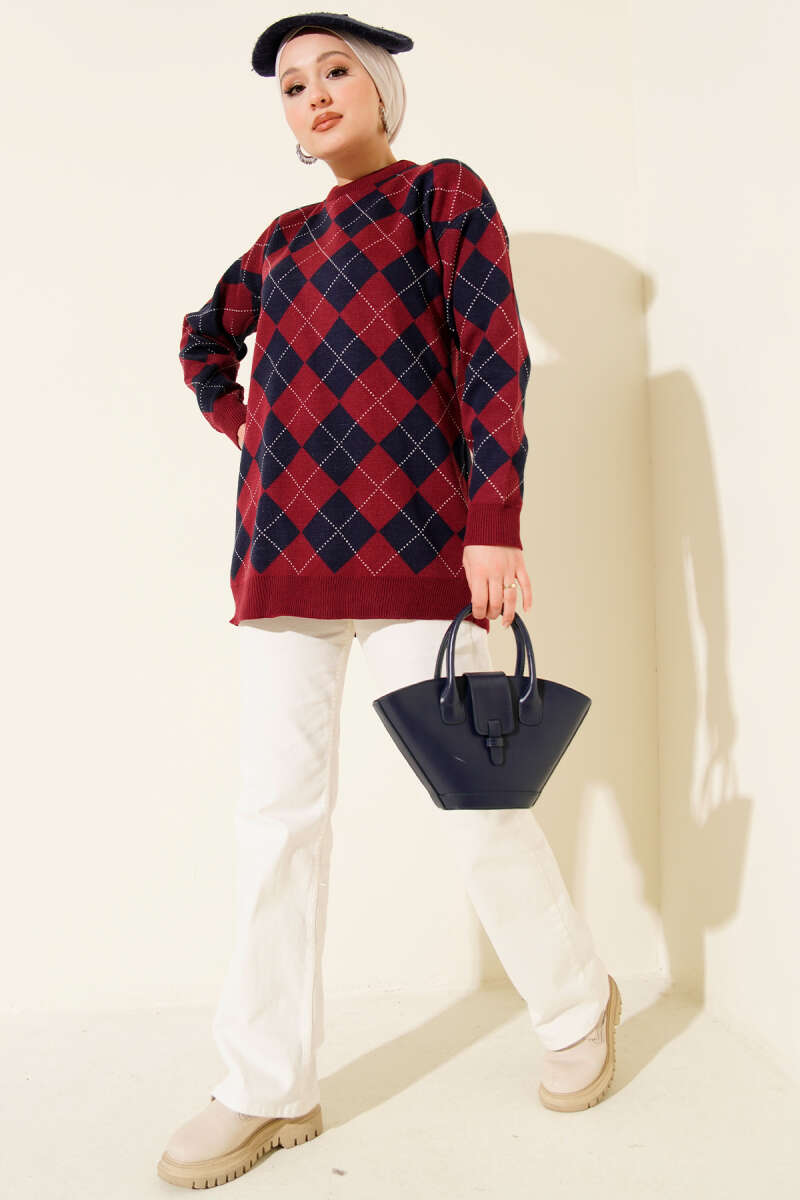 Küçük Baklava Desenli Triko Tunik Lacivert