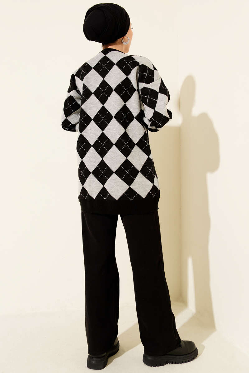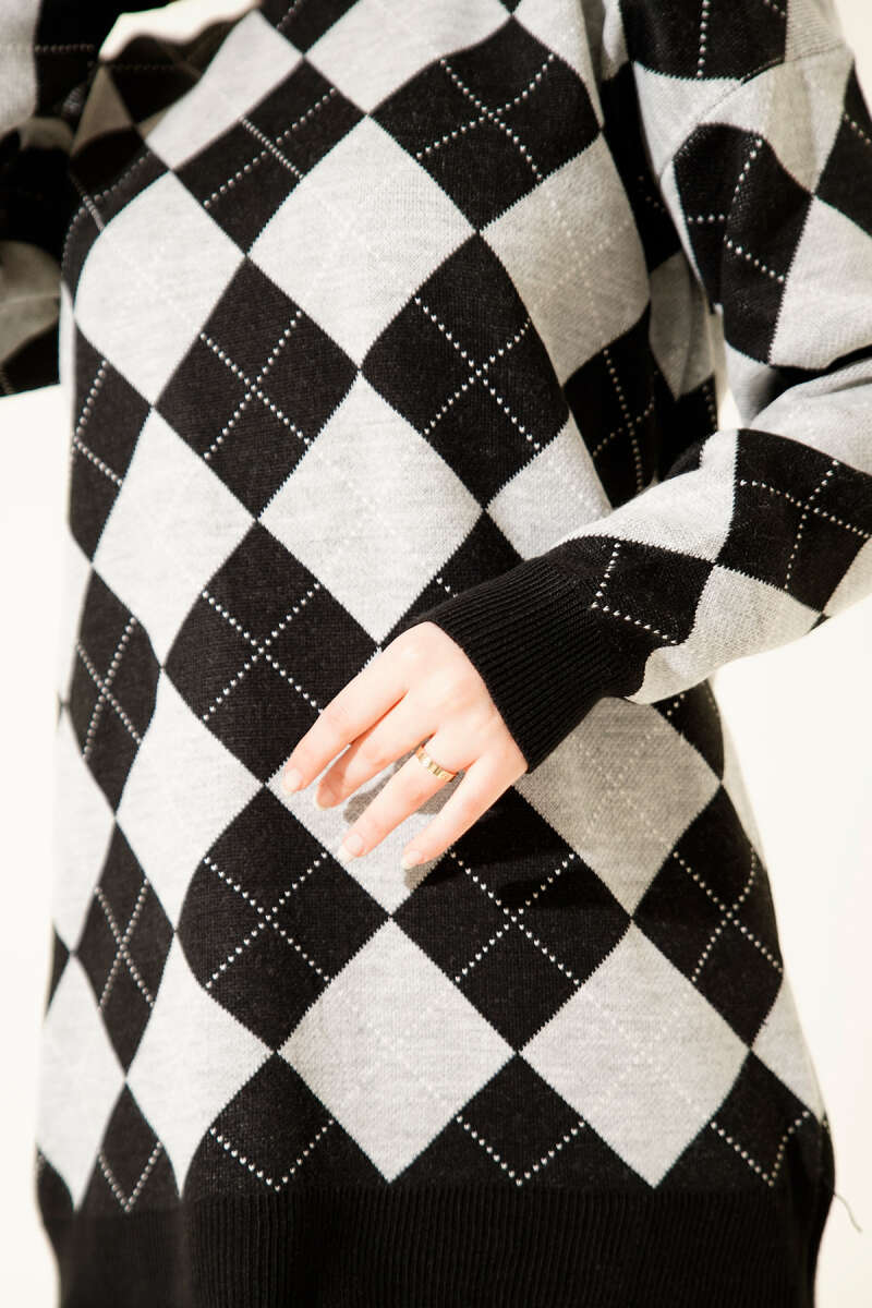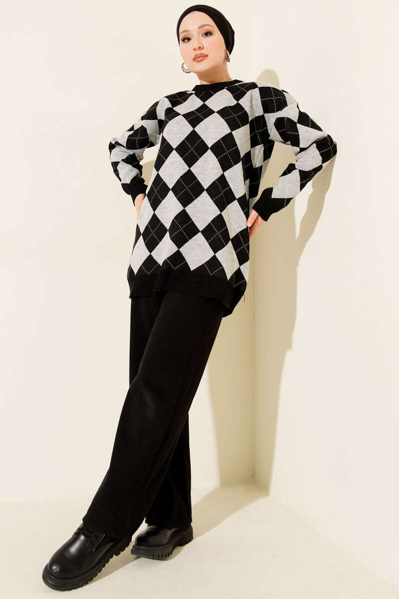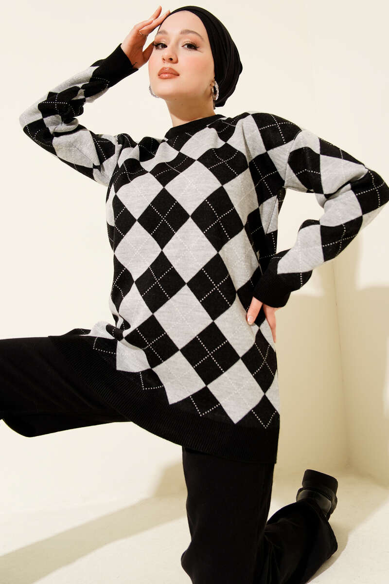 Küçük Baklava Desenli Triko Tunik Siyah