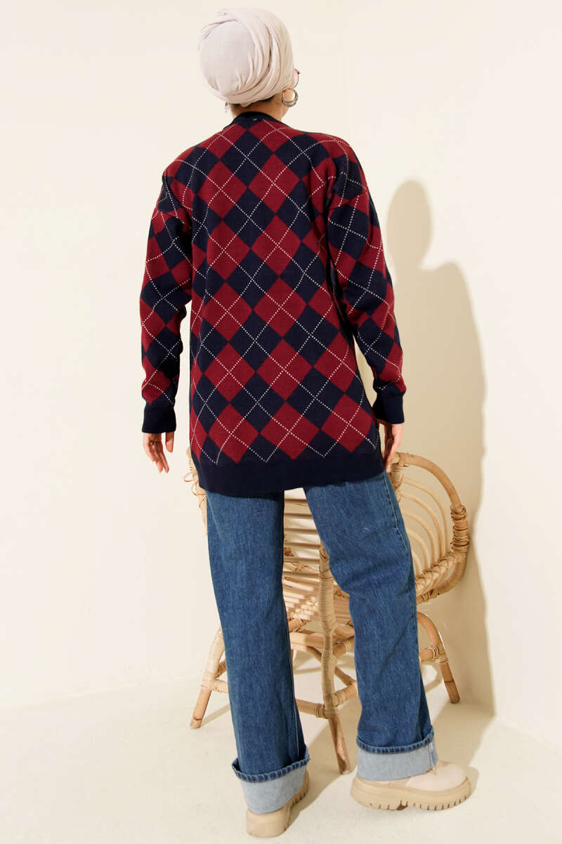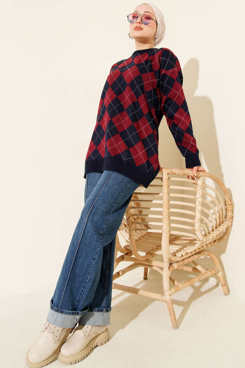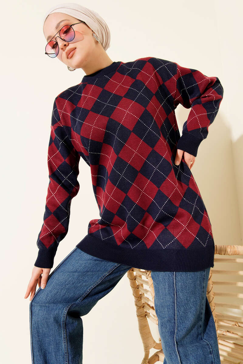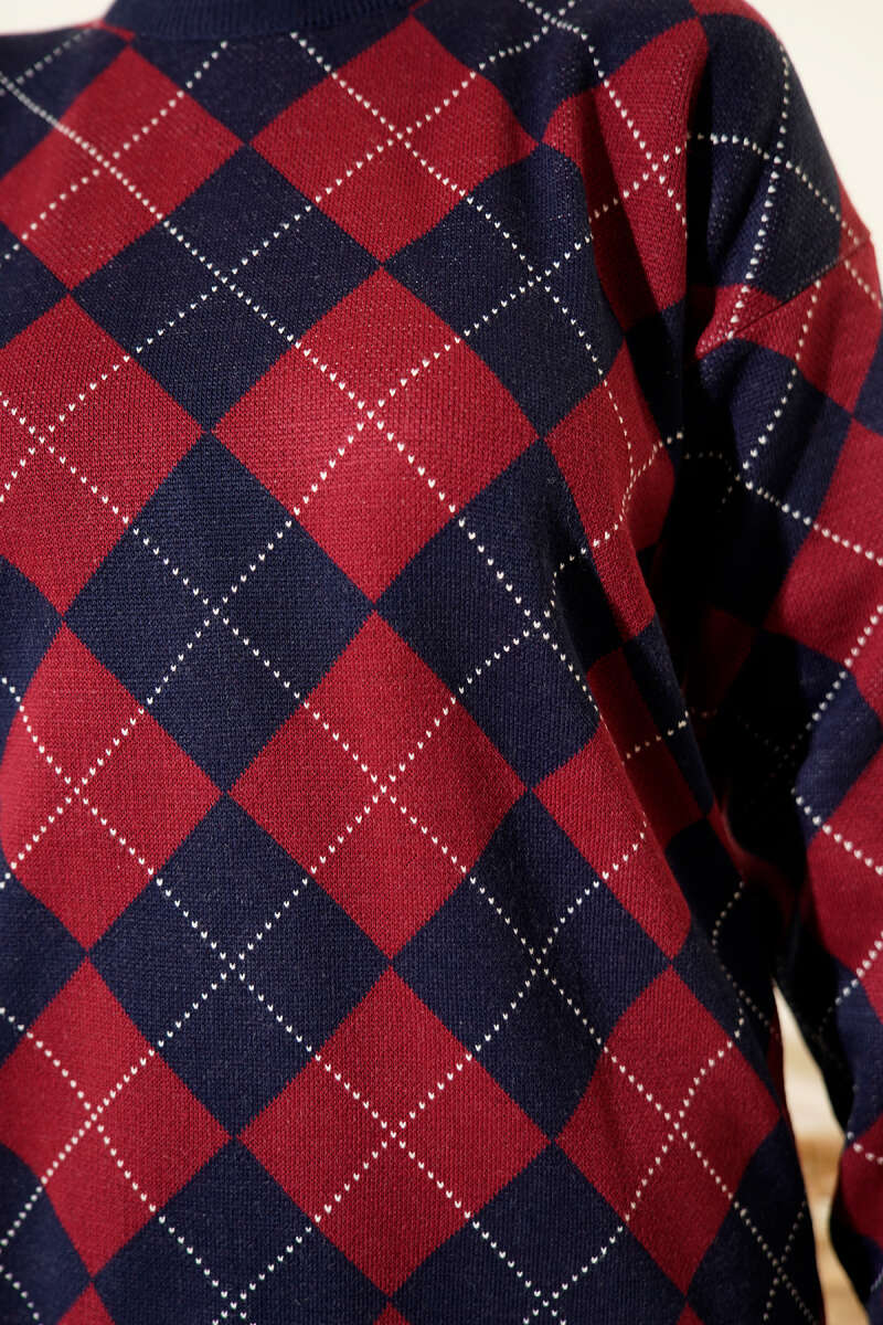 Küçük Baklava Desenli Triko Tunik Bordo