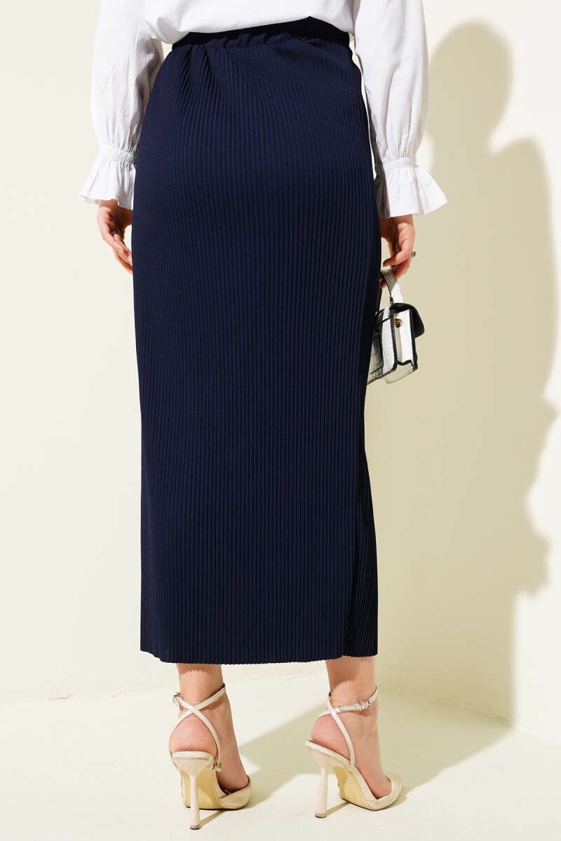 Kemer Aksesuarlı Ekoseli Etek Haki