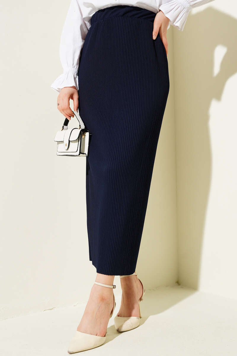 Beli Lastikli Saten Kloş Etek Kırmızı