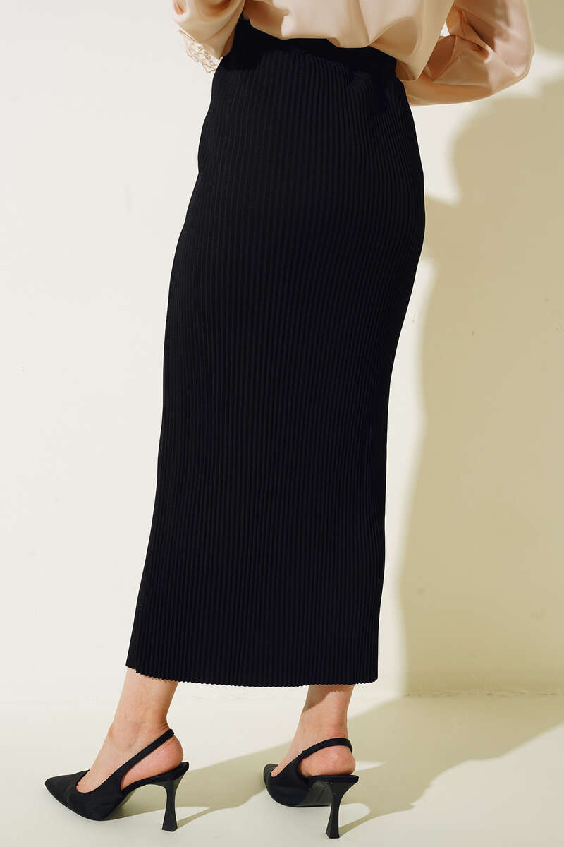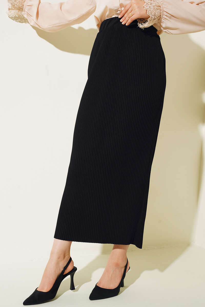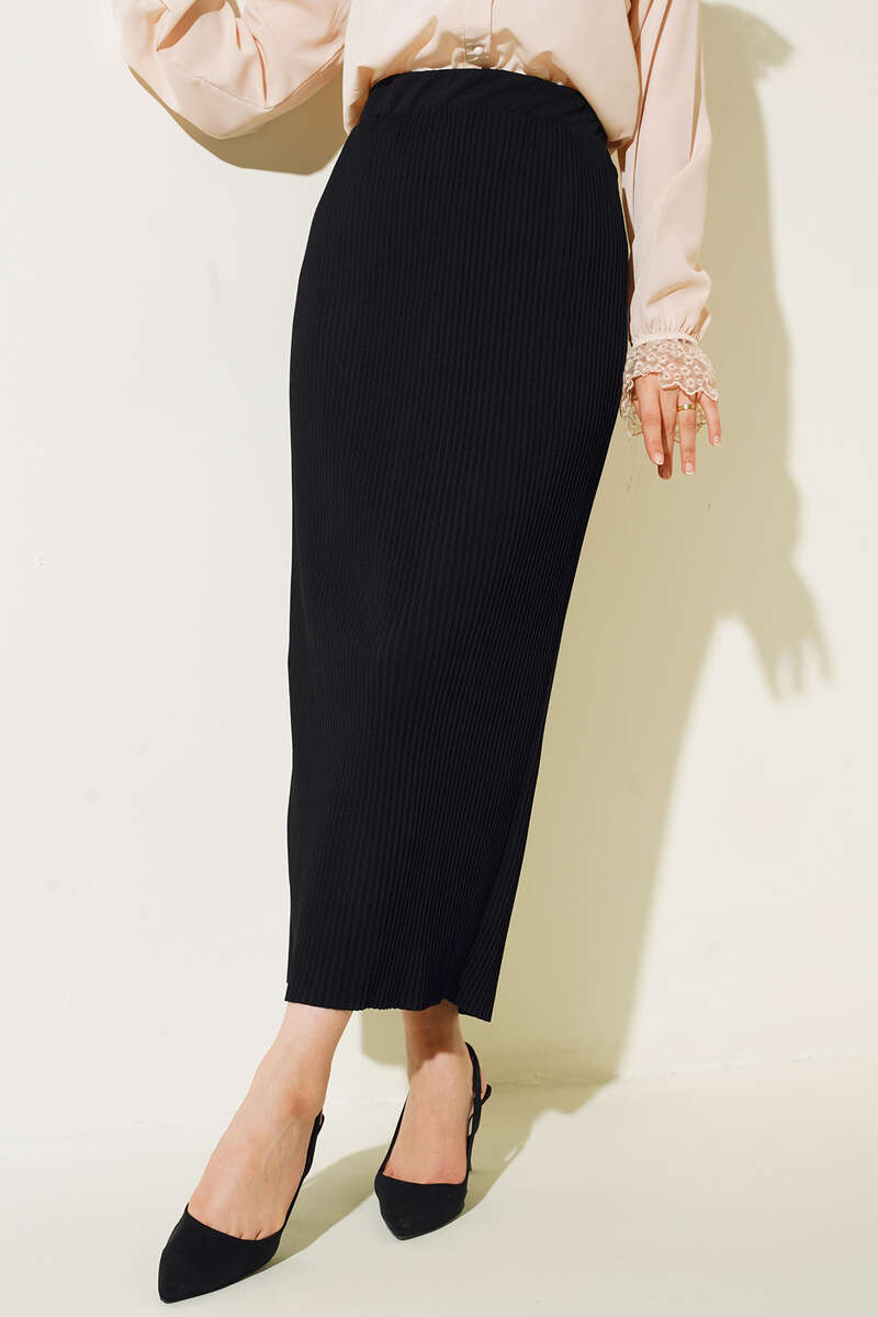 Pileli Etek Siyah