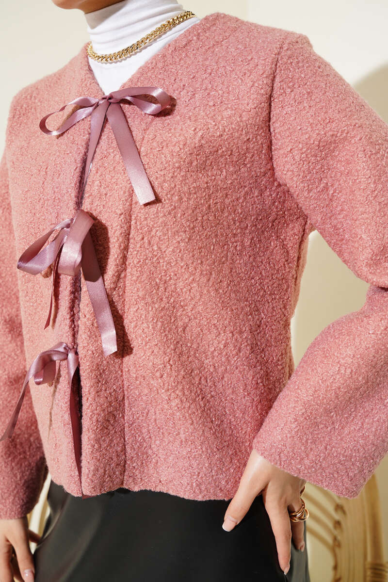 Kruvaze Yaka Kuşaklı Kaşe Ceket Bordo