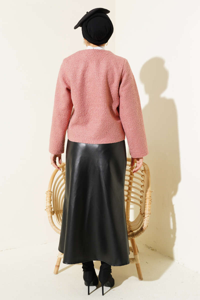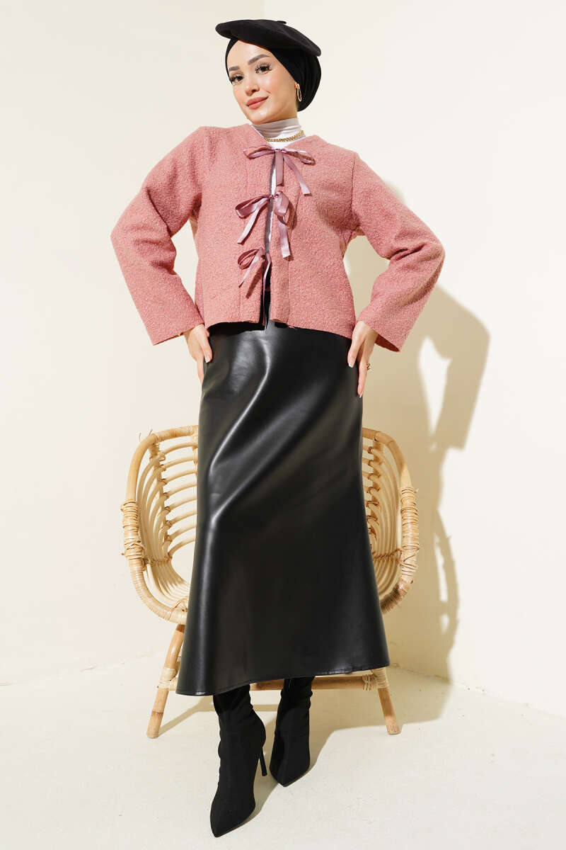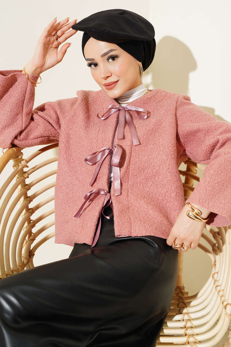 Kurdele Bağcıklı Buklet Ceket Gül Kurusu