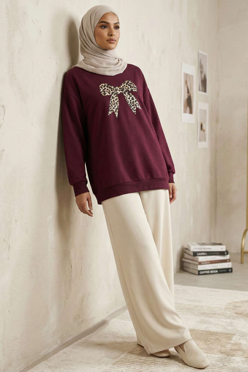Kurdele Baskılı Tunik Burgonya