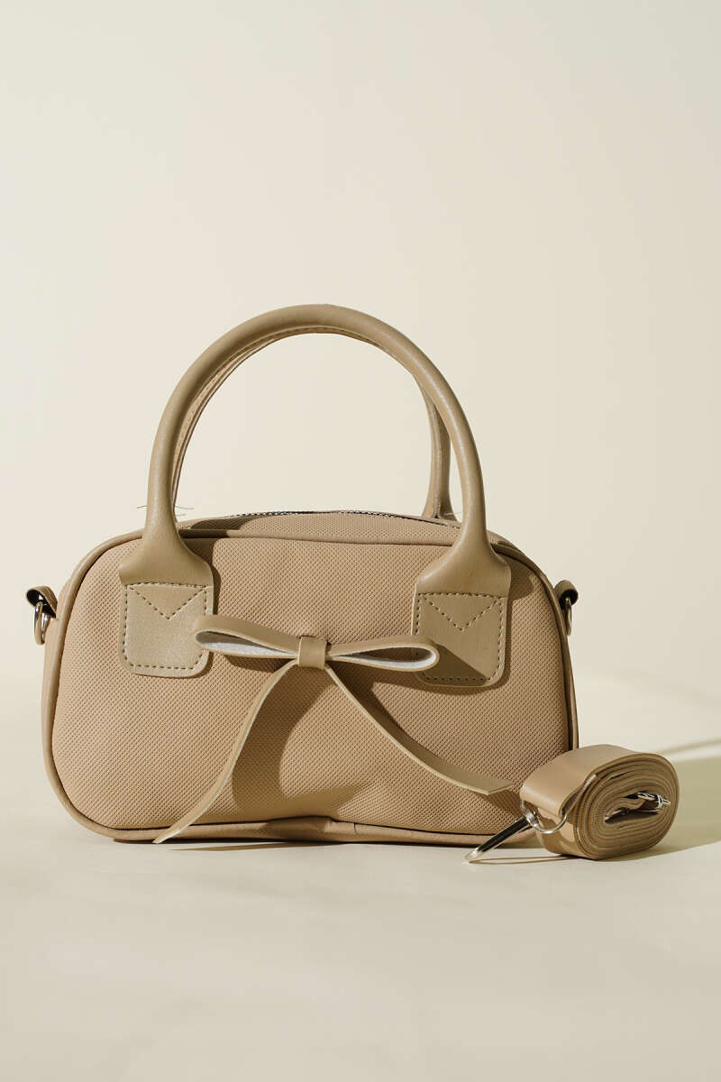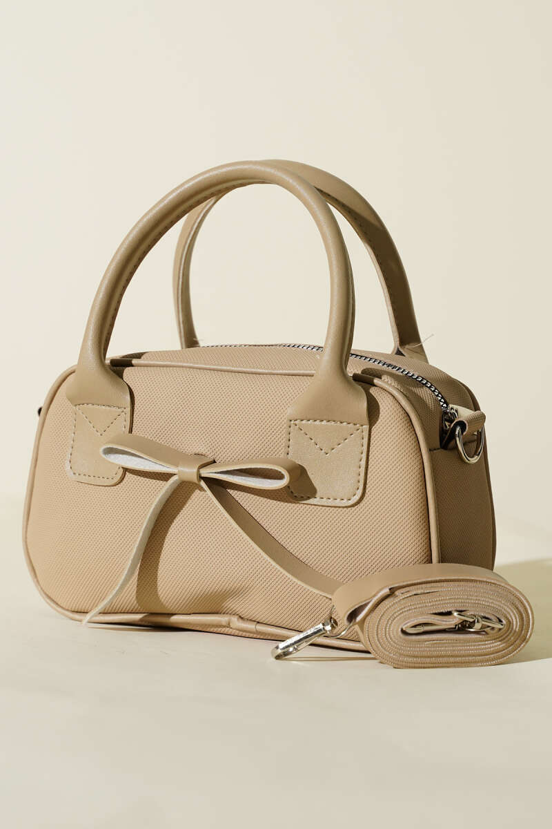 Mini Cüzdan Detaylı Uzun Kulplu Çanta Bej