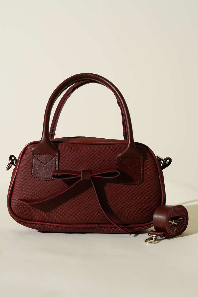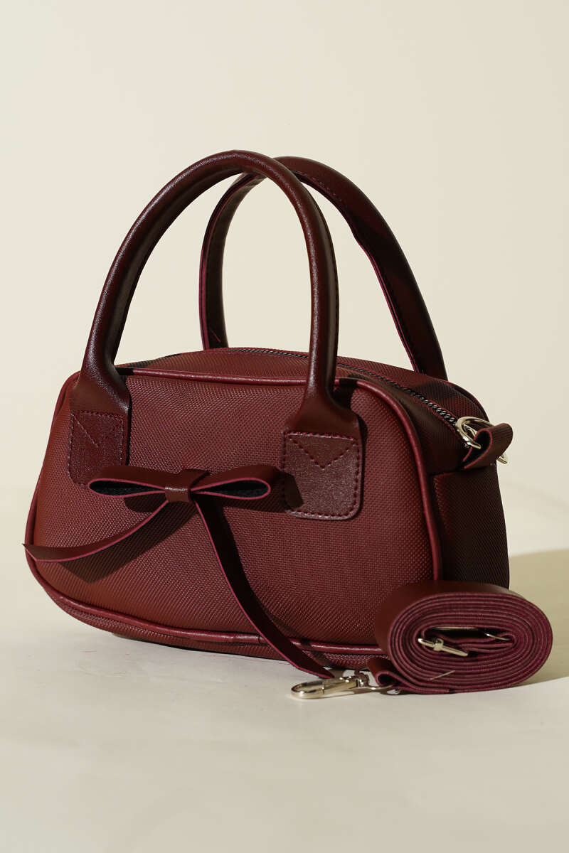 Mini Cüzdan Detaylı Uzun Kulplu Çanta Bordo