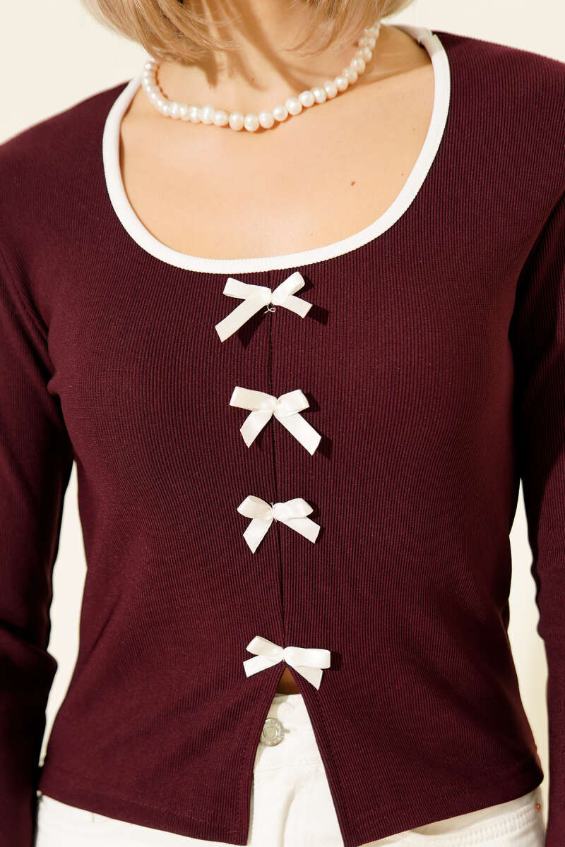 Kurdele Fiyonklu Fitilli Bluz Mürdüm