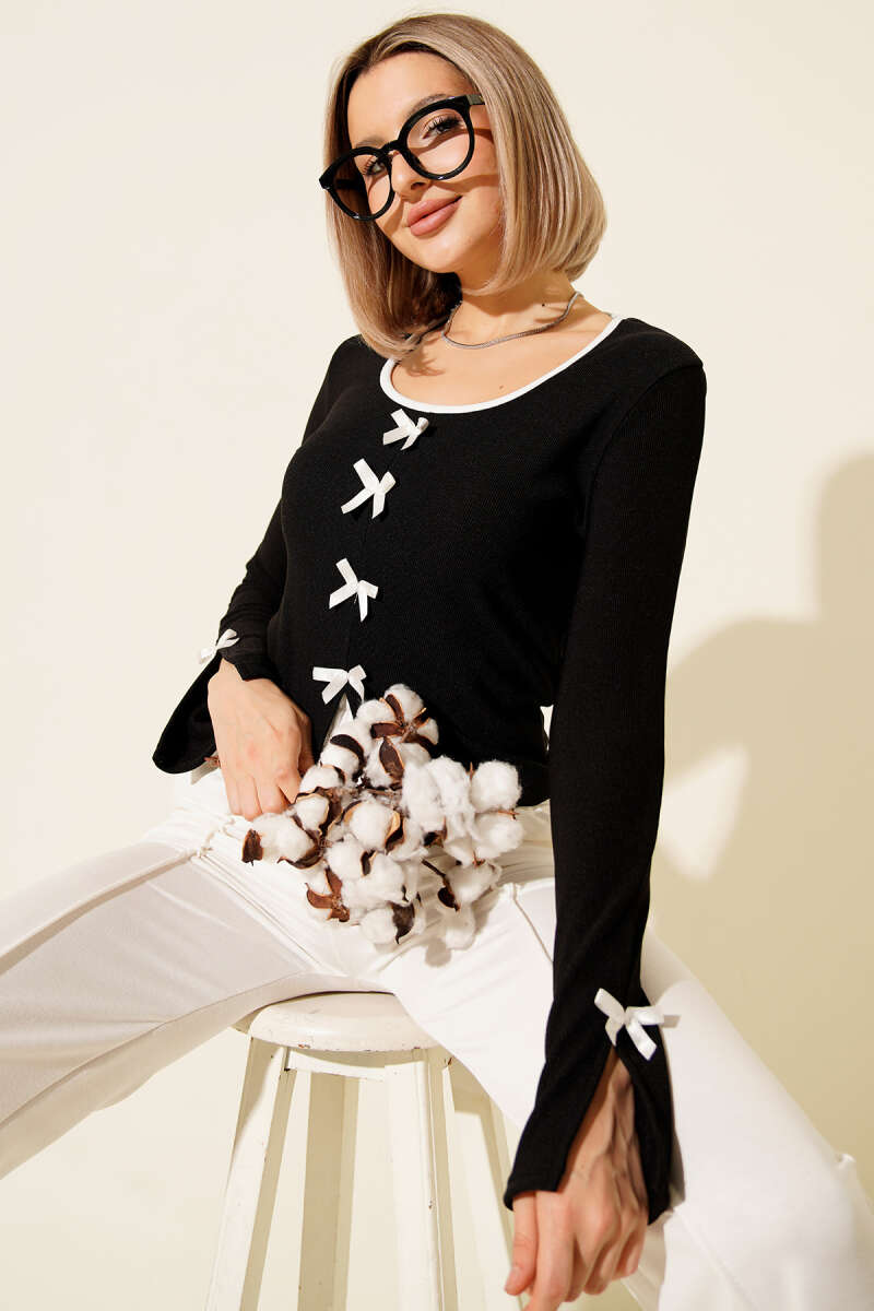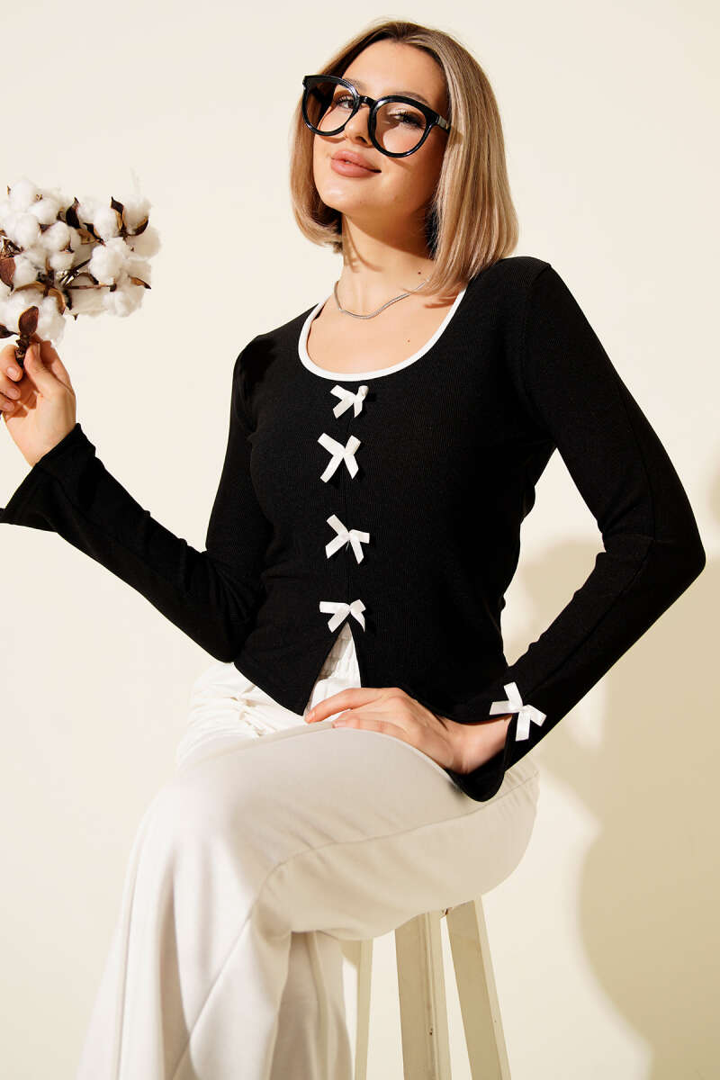 Omuz Fırfırlı Kuşaklı Scuba İkili Takım Siyah