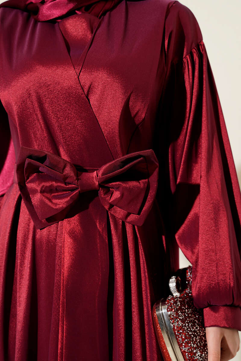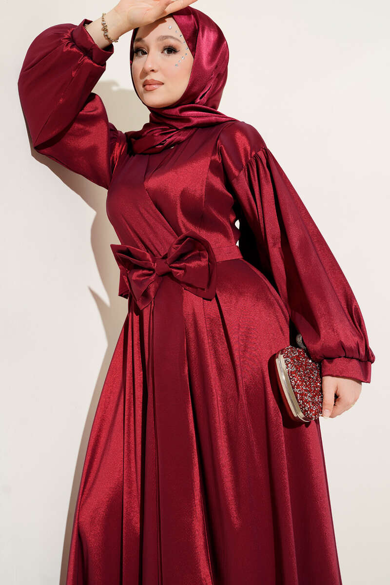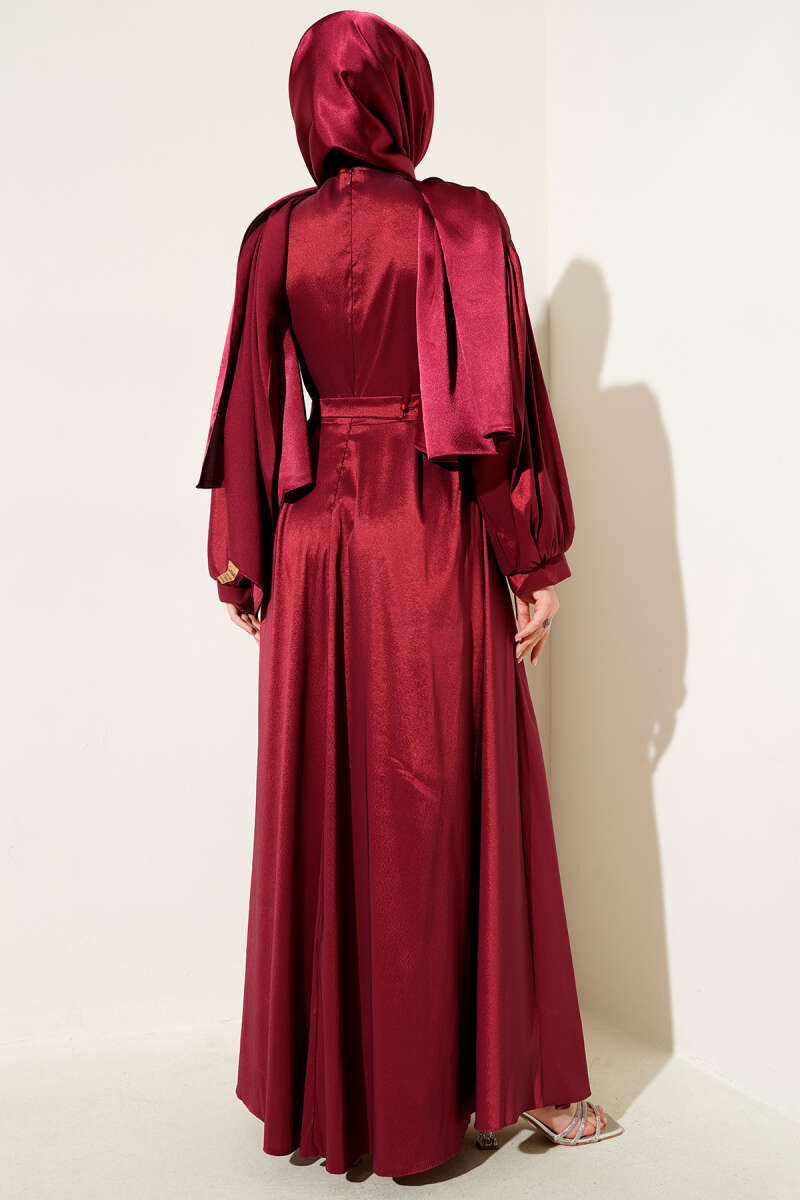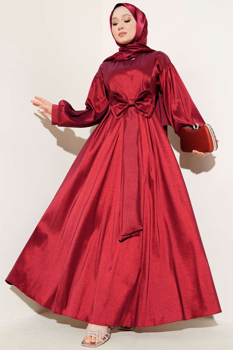 Metal Düğme Süslemeli Bağcıklı Elbise Vizon
