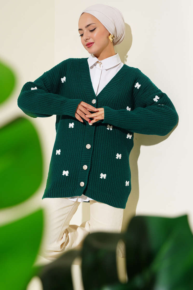 Kurdele Süslemeli Triko Hırka Lacivert