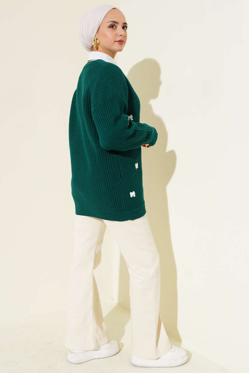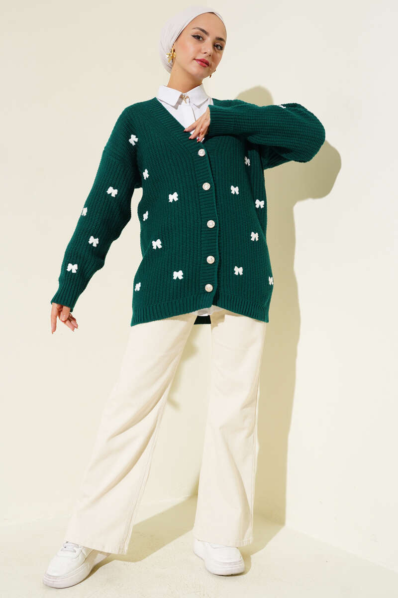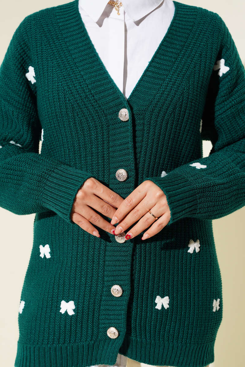 Kurdele Süslemeli Triko Hırka Bordo