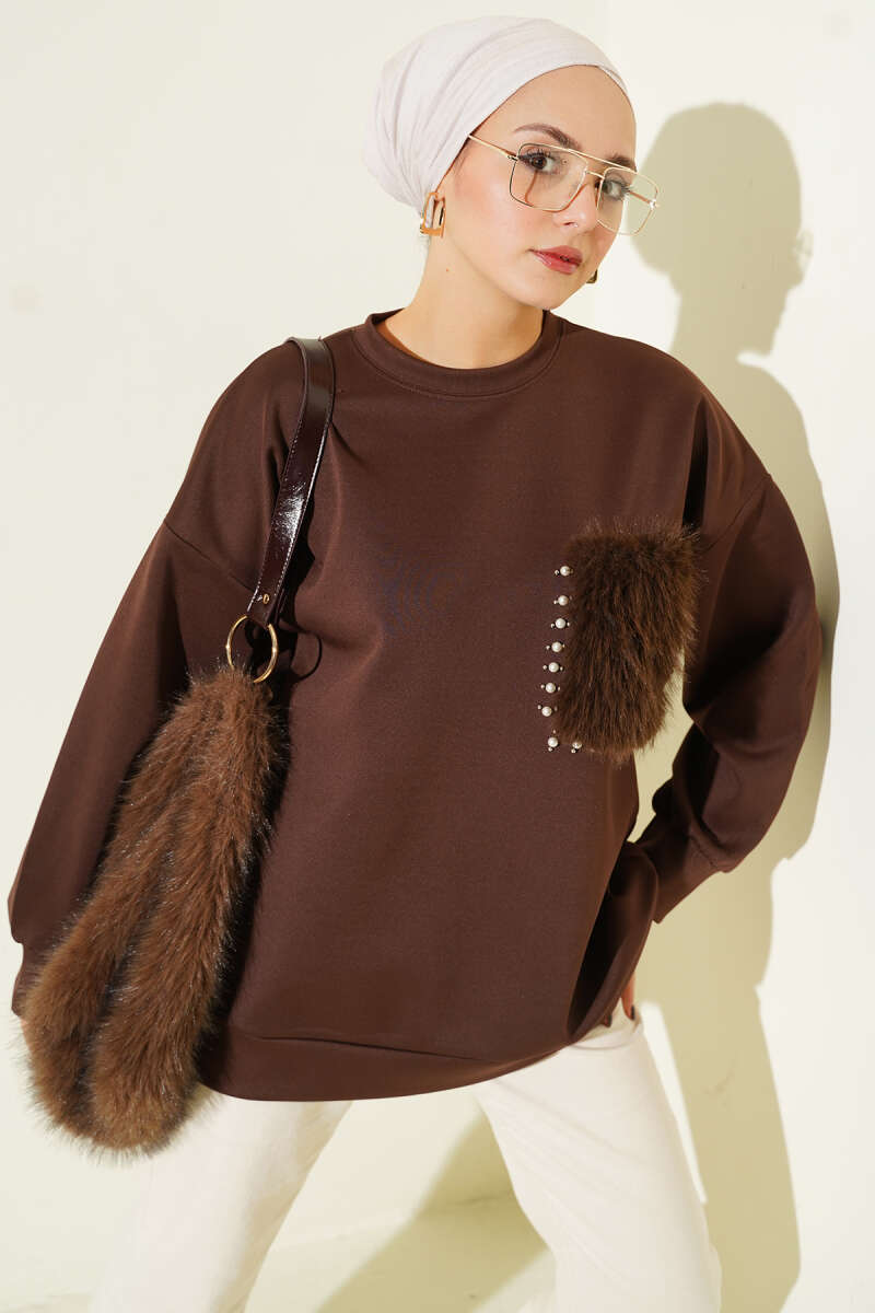 Yatay Çizgi Detaylı Triko Tunik Kahve