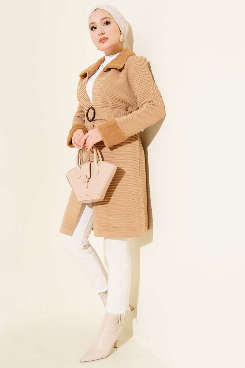 Kol Bağcıklı Çiçek Nakışlı Triko Kazak Bej