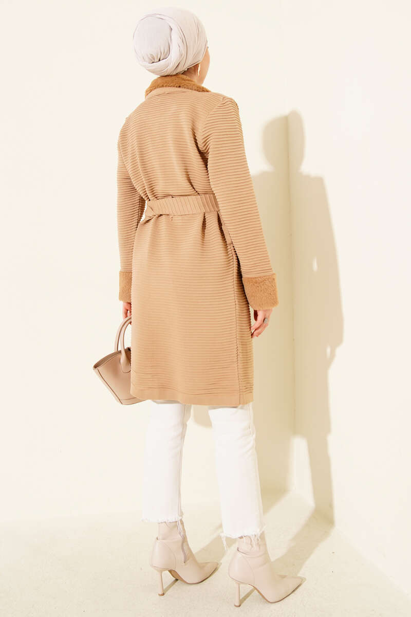Kruvaze Yaka Belden Kuşaklı Kaban Siyah