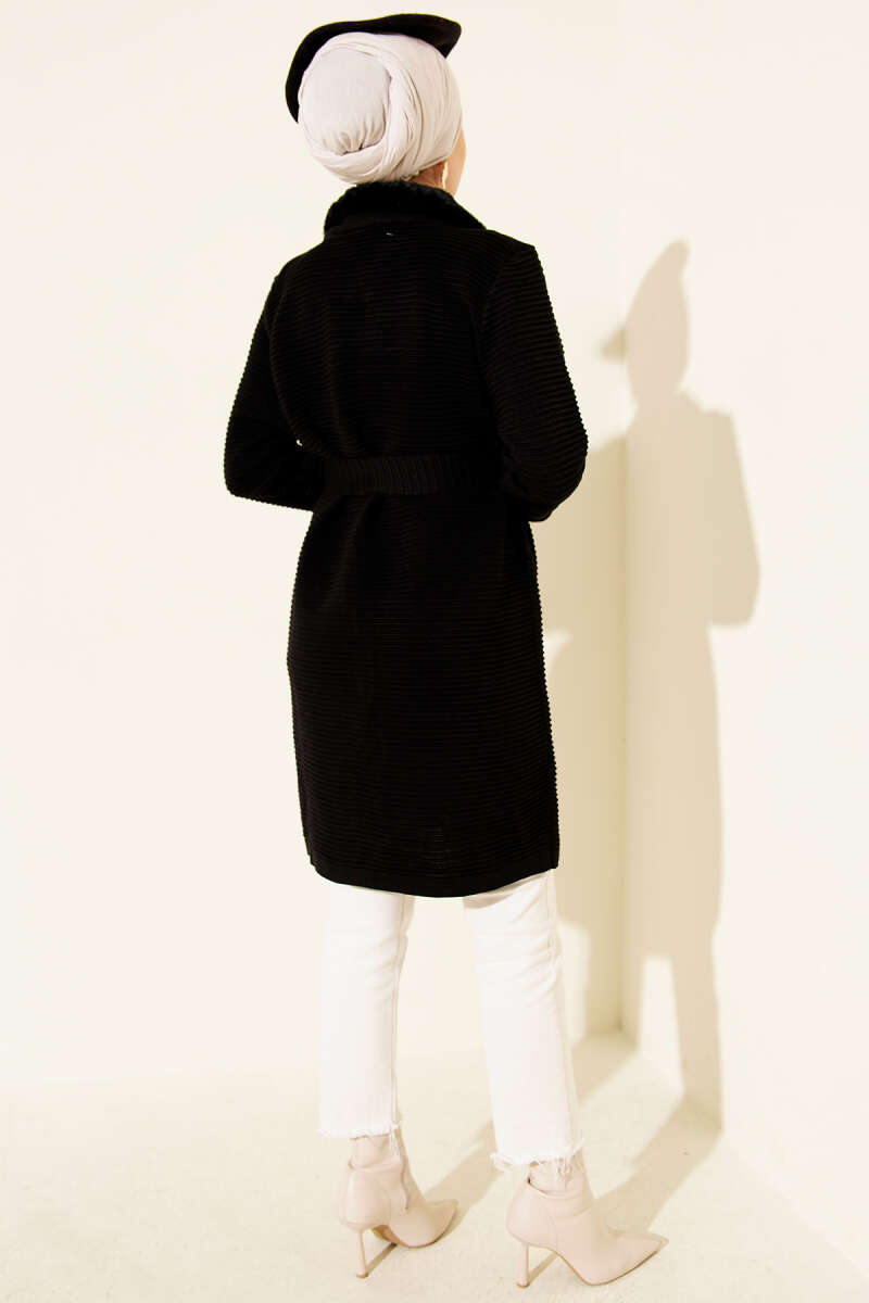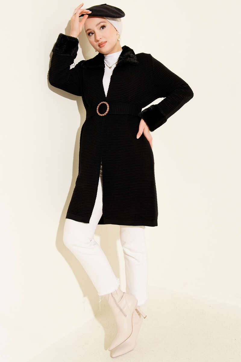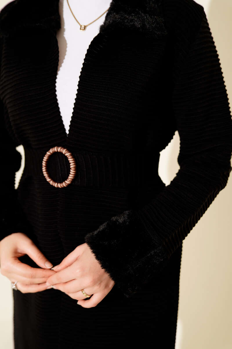 Boydan Düğmeli Sepet Örgü Uzun Hırka Lacivert