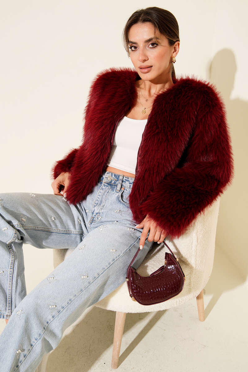 Kruvaze Yaka Kuşaklı Buklet Yelek Kırmızı