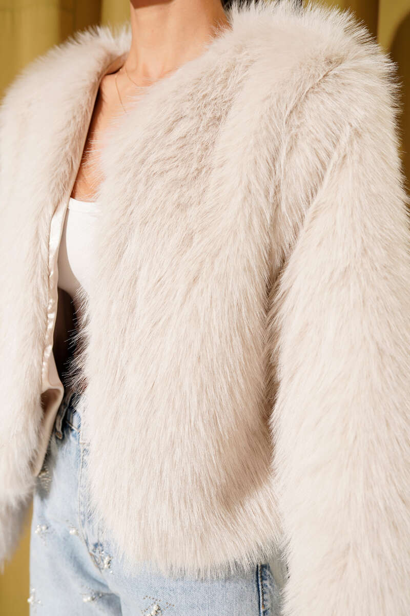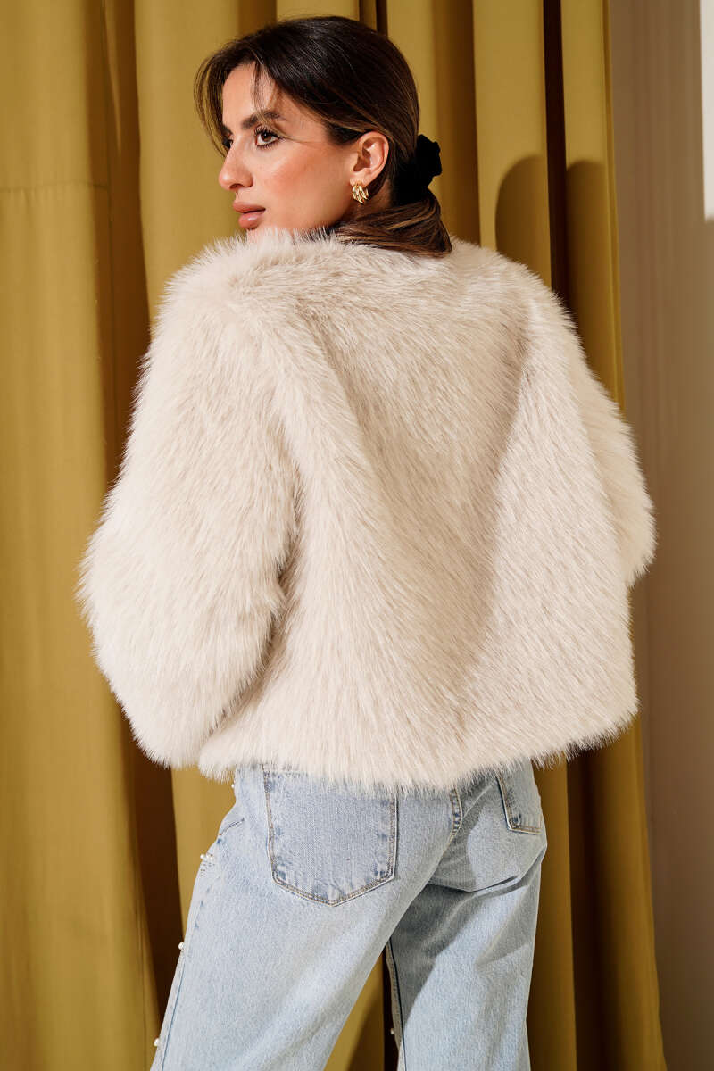 Kruvaze Yaka Düğmeli Kürklü Mont Kahve