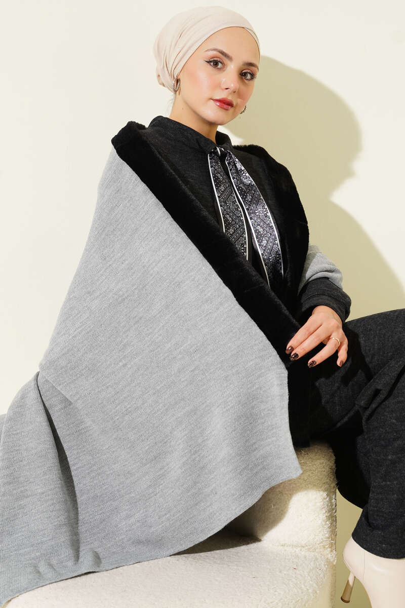 Kürk Kapüşonlu Kapitone Uzun Mont Siyah