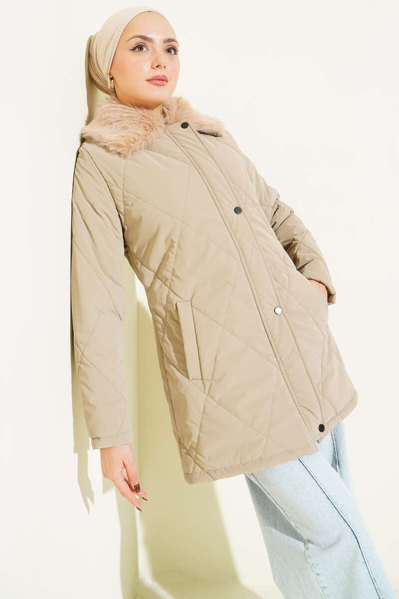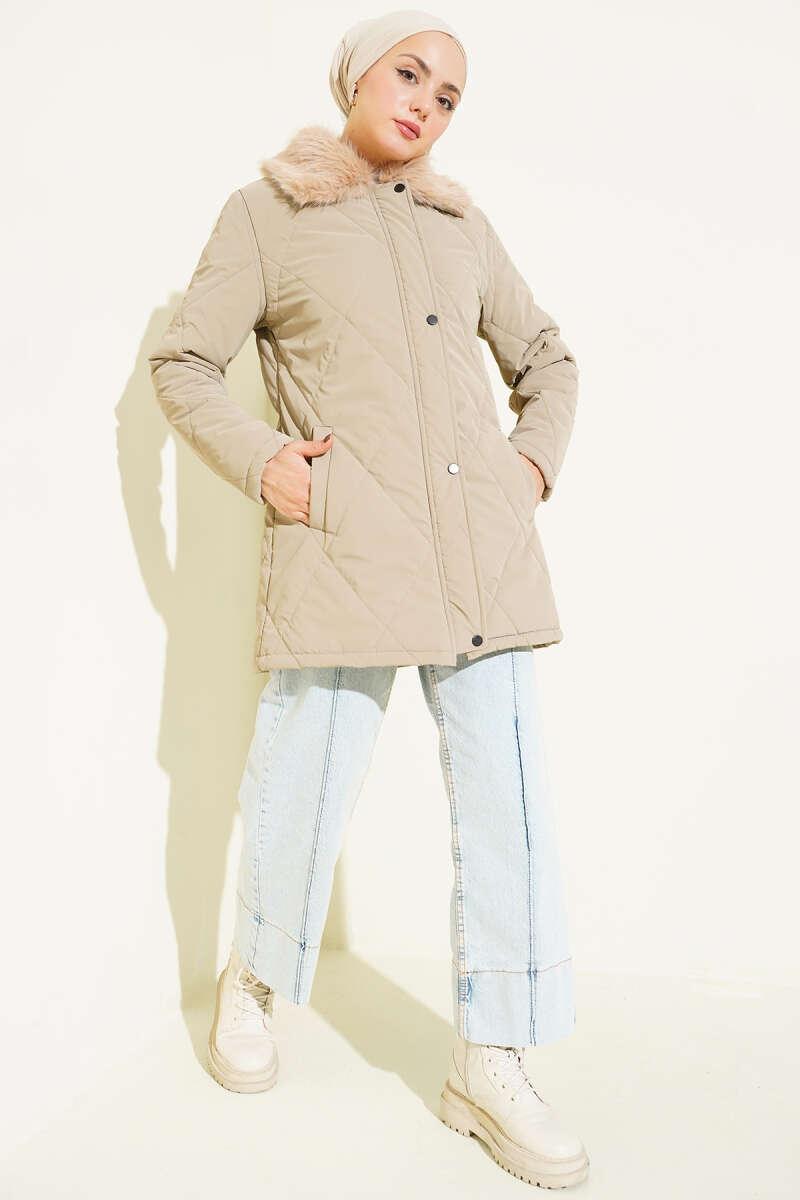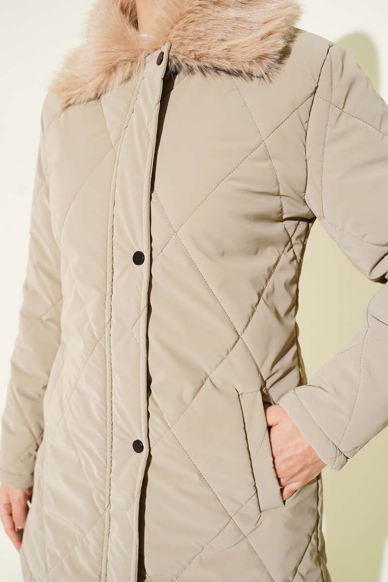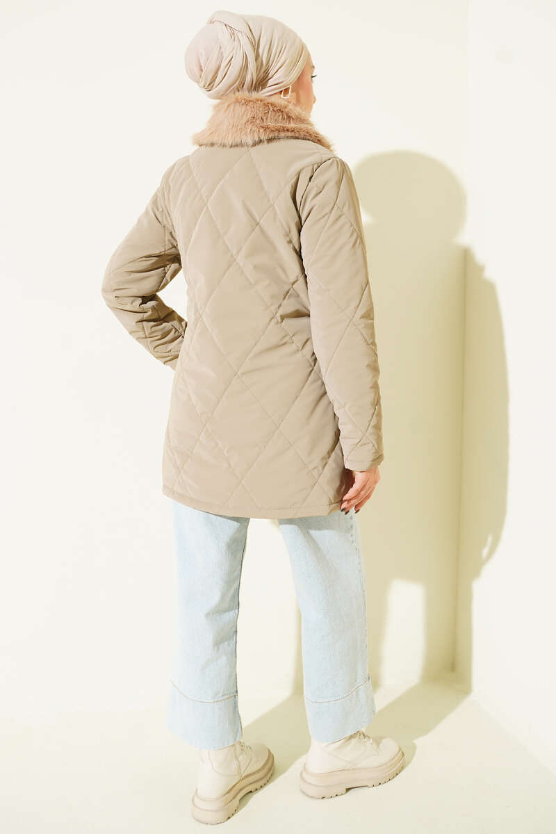 Kruvaze Yaka Kürklü Mont Acı Kahve