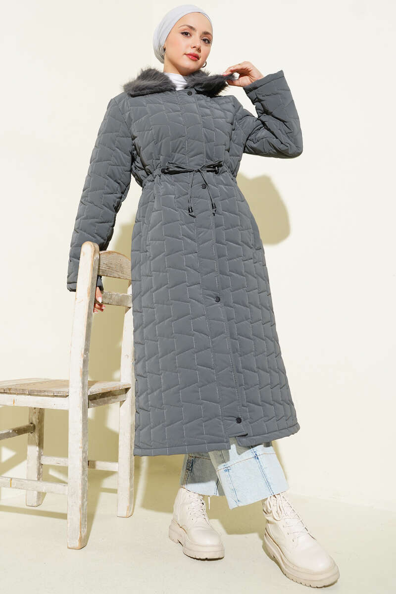 Atkı Detaylı Ekoseli Gömlek Antrasit