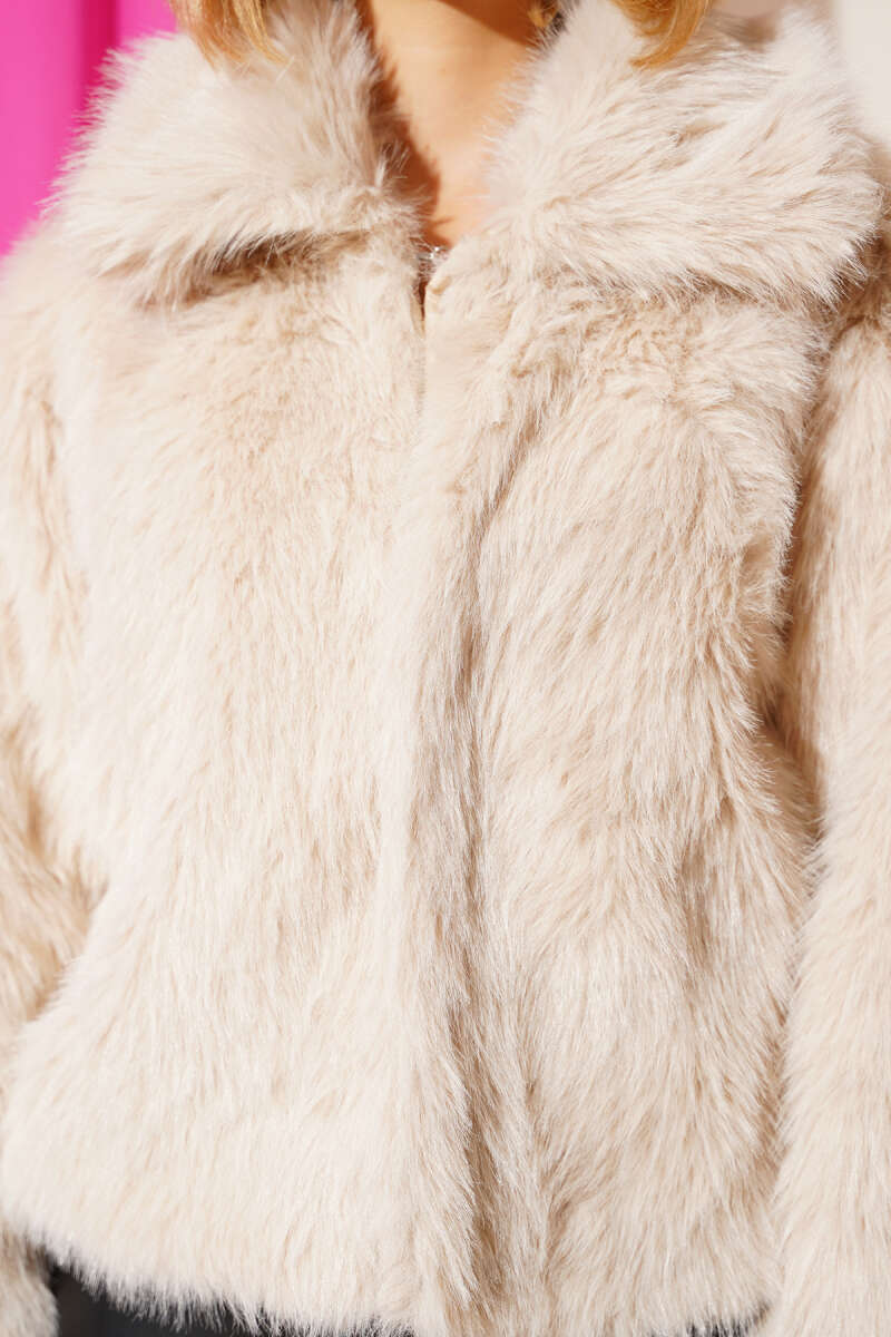 Kürklü Detaylı Salaş Mont Bej