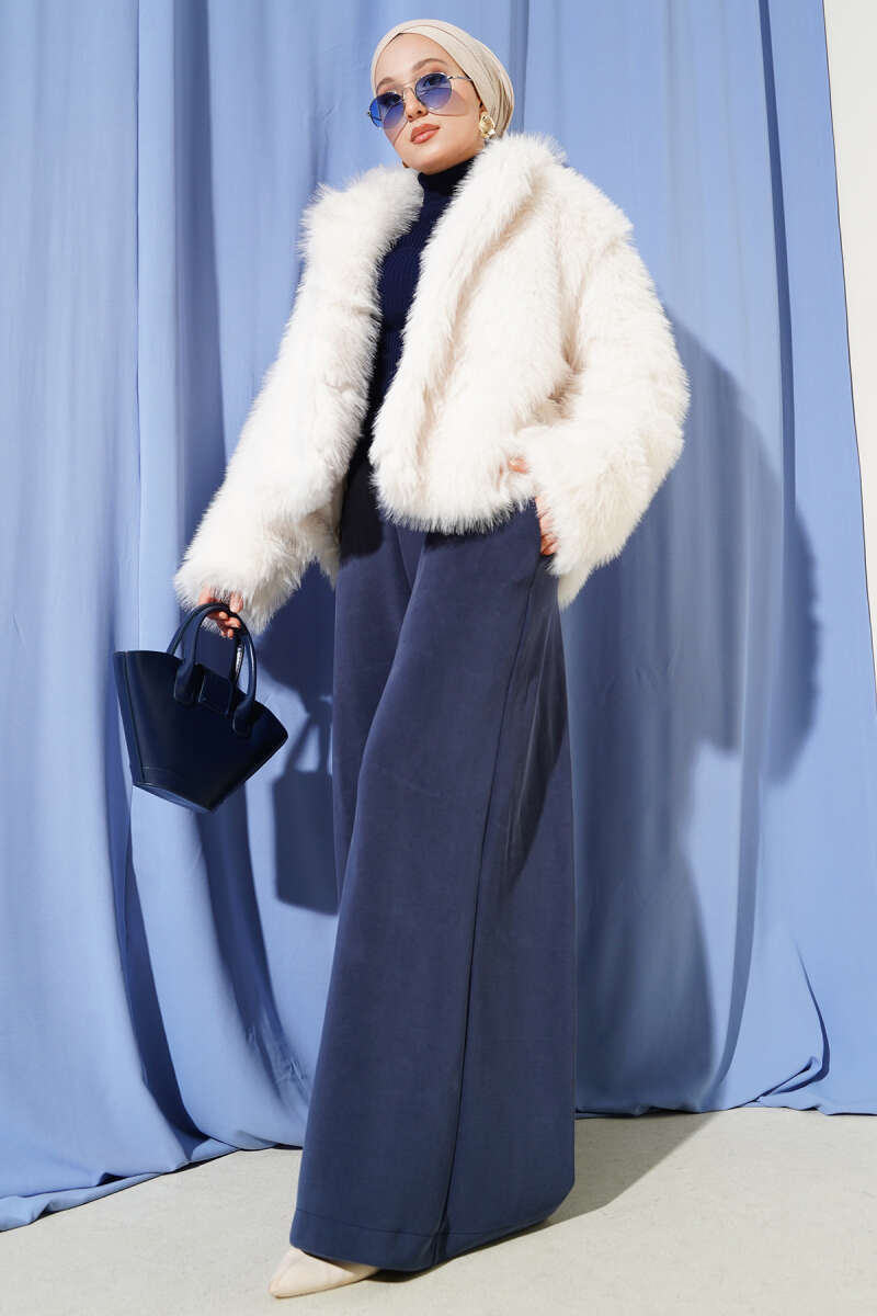 Kruvaze Yaka Salaş Cepli Kürk Mont Gri