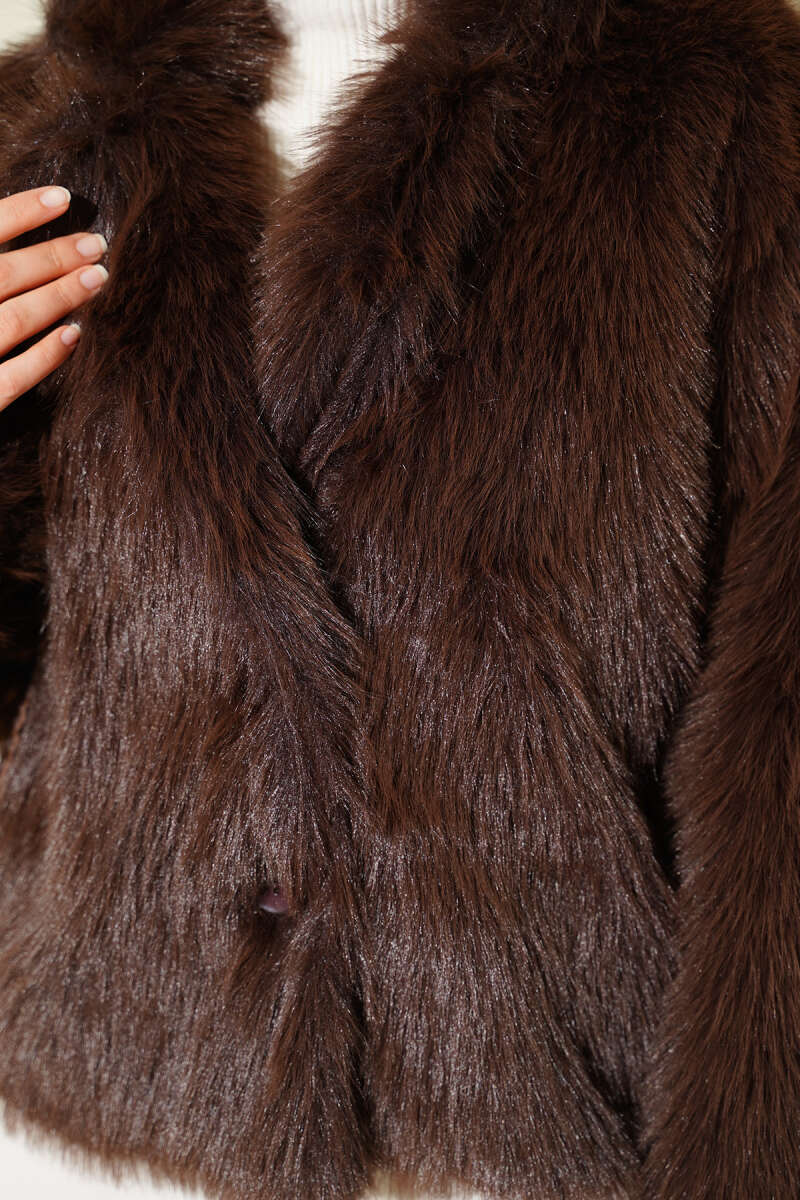 Kruvaze Yaka Salaş Cepli Kürk Mont Gri