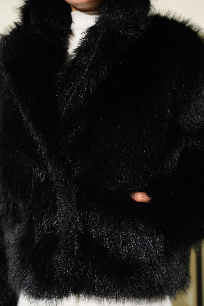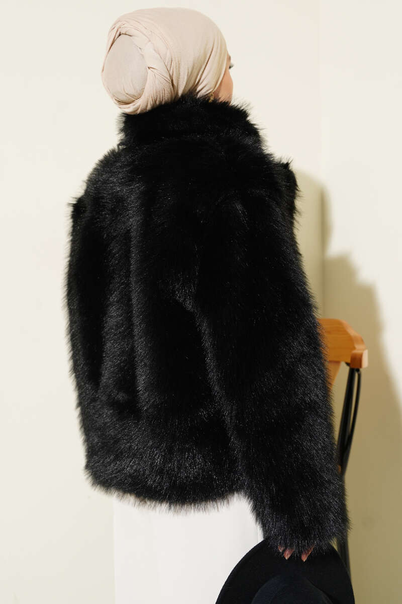 Bilek Ribanalı Kürklü Mont Siyah