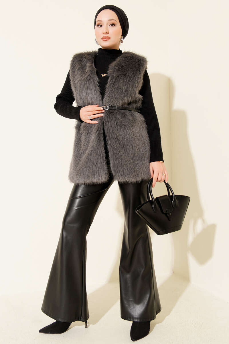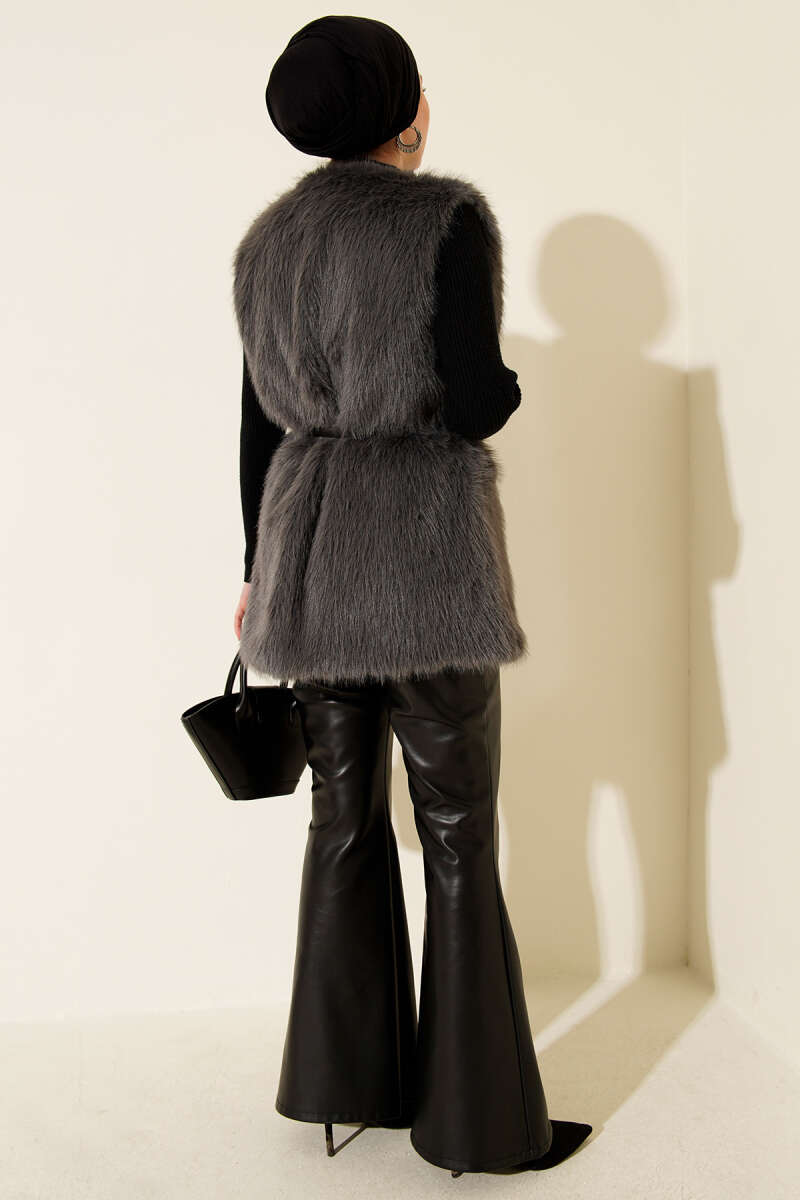 Kruvaze Yaka Kuşaklı Buklet Yelek Lacivert