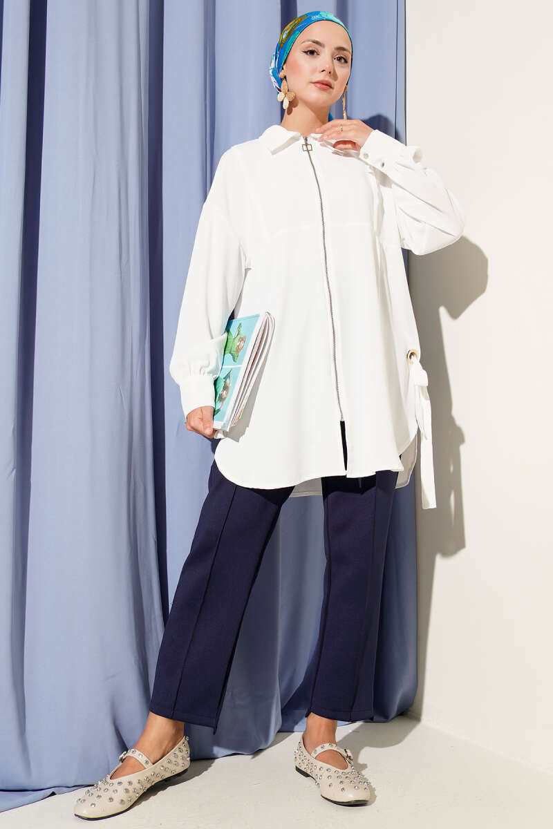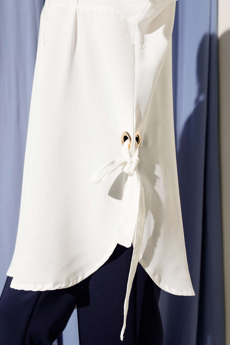 Kuş Gözü Detaylı Tunik Beyaz