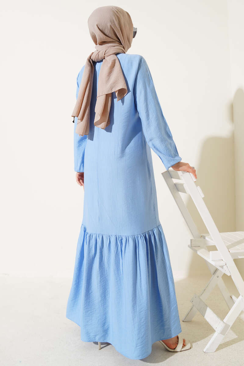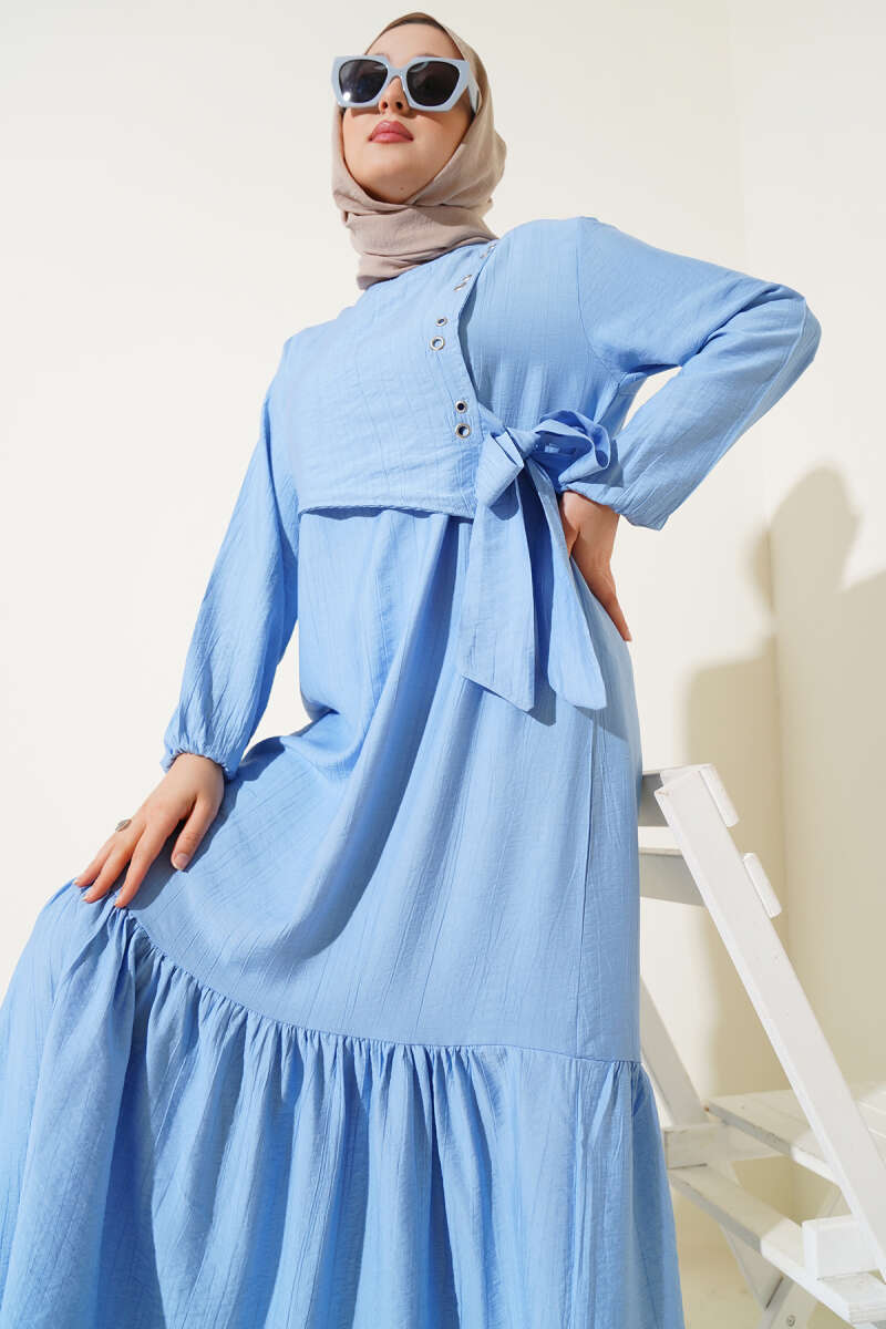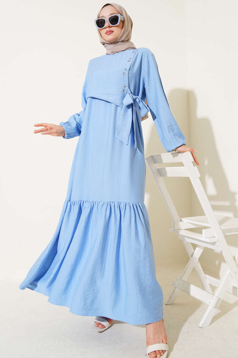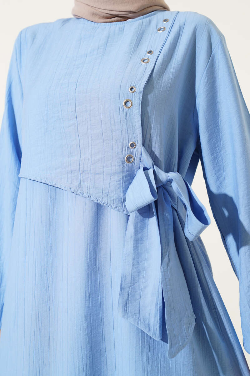 Kuş Gözü Detaylı Yandan Bağlamalı Elbise Mavi
