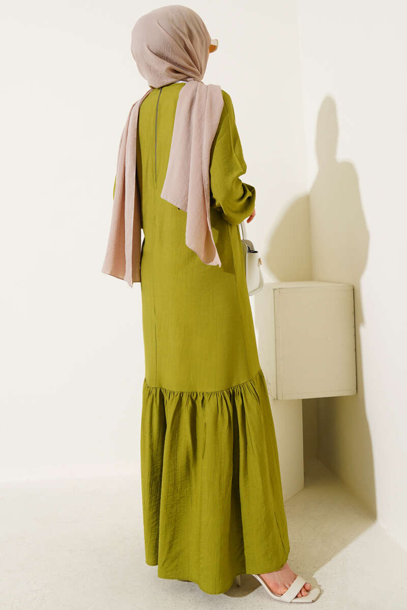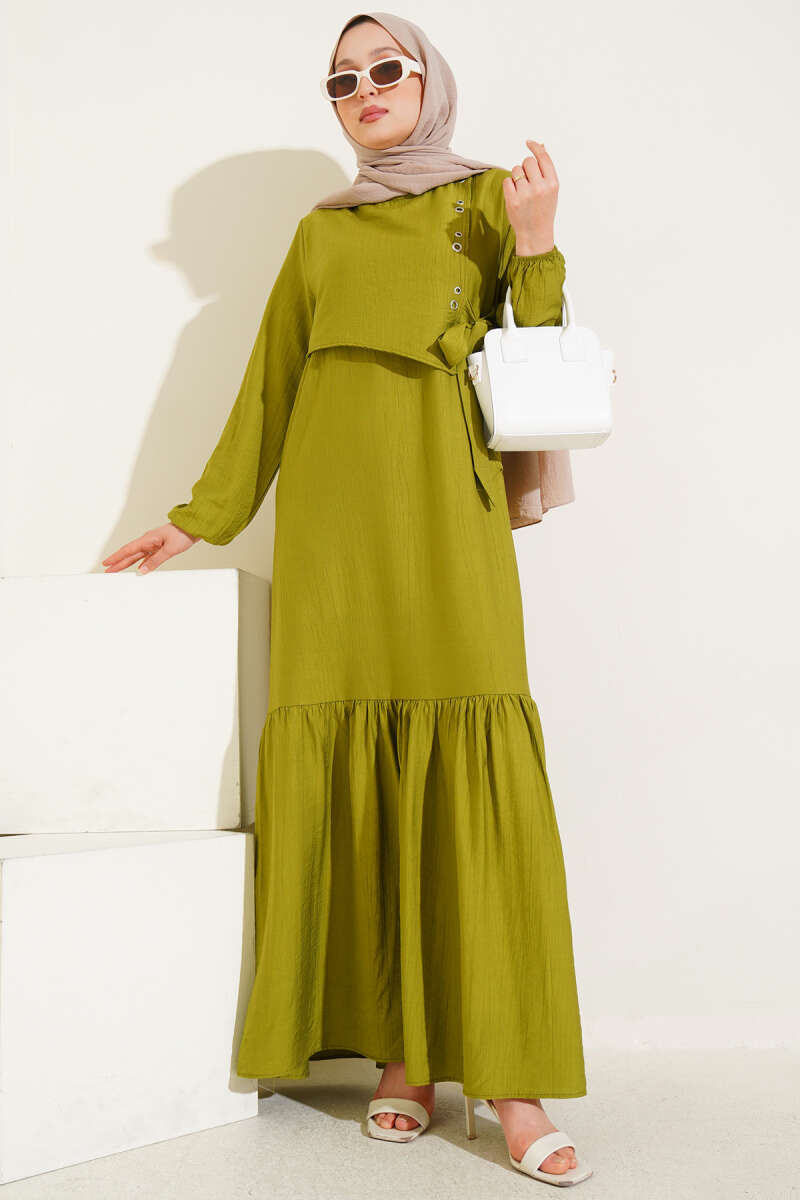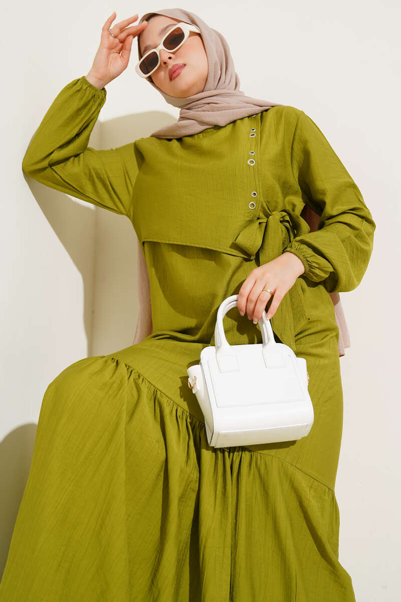 Scuba Pens Detaylı Kemerli Elbise Haki