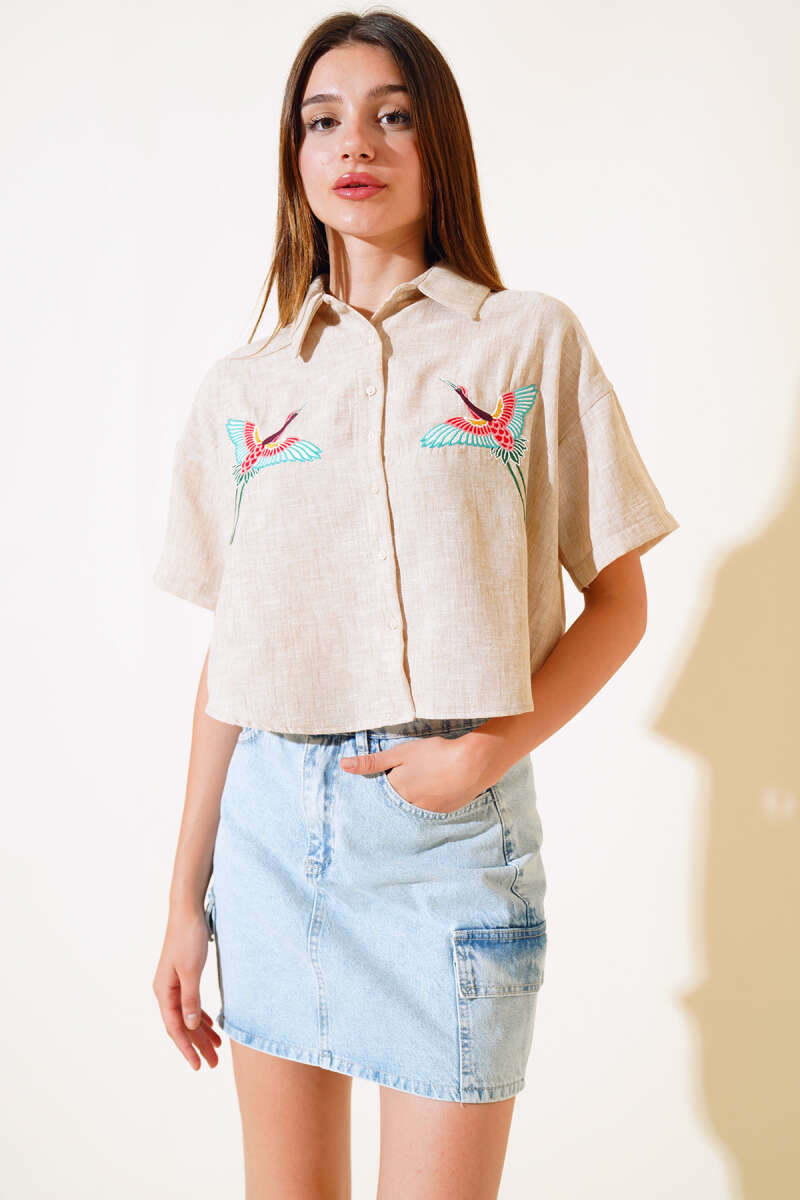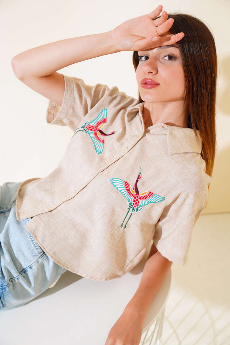 Uzun Kollu Yarım Fermuarlı Bluz Ekru