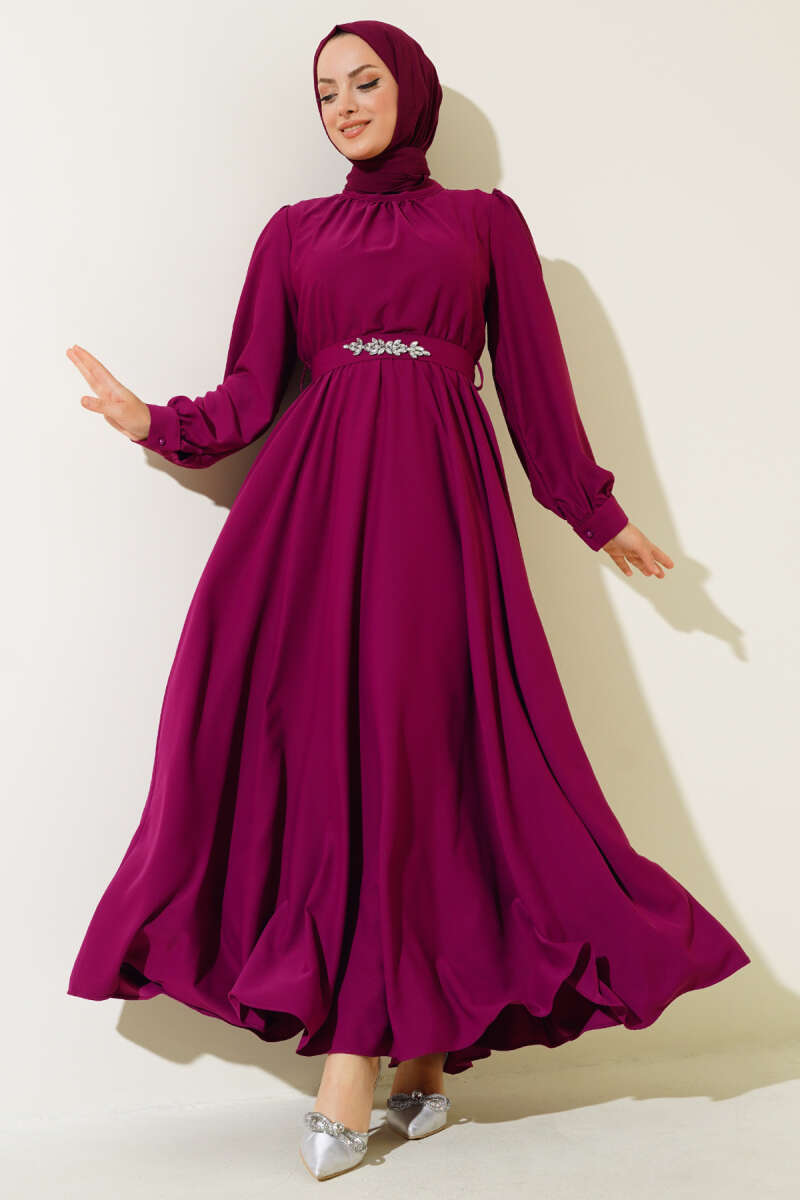 Kol Ucu Armalı İp Bağcıklı Elbise Kahve