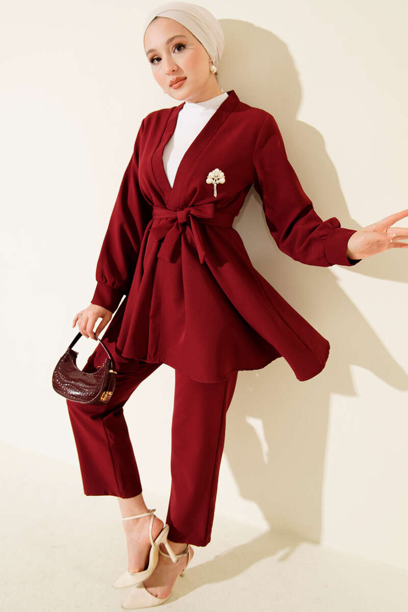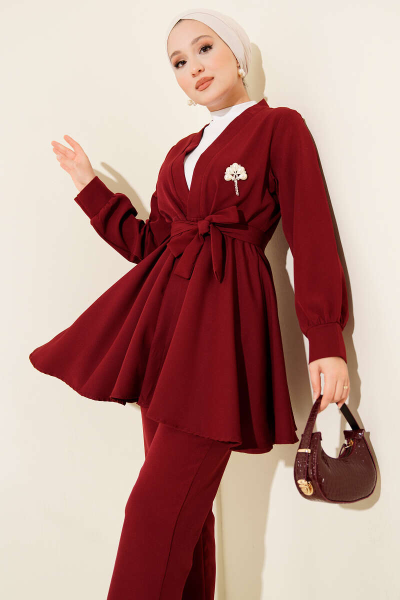 Lotus Destekli Jakar Sütyen Takım Bordo