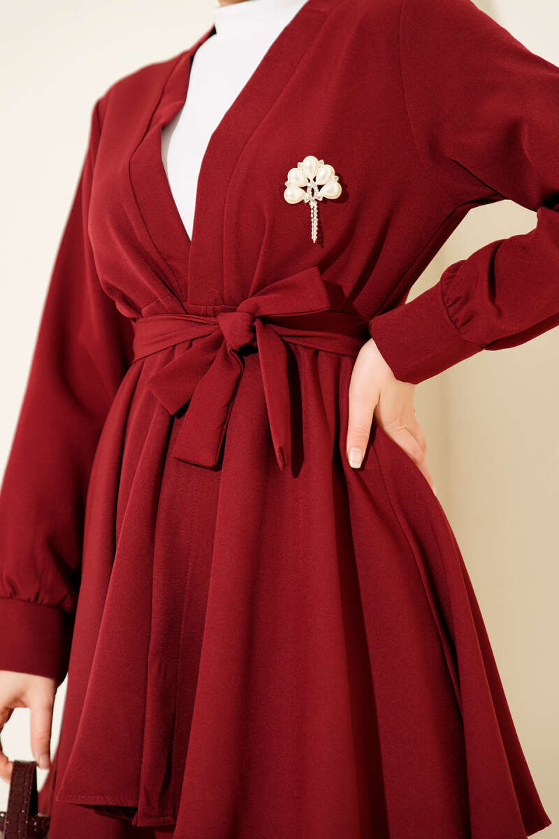 Astarlı Kuşaklı Kaşe Kaban Latte