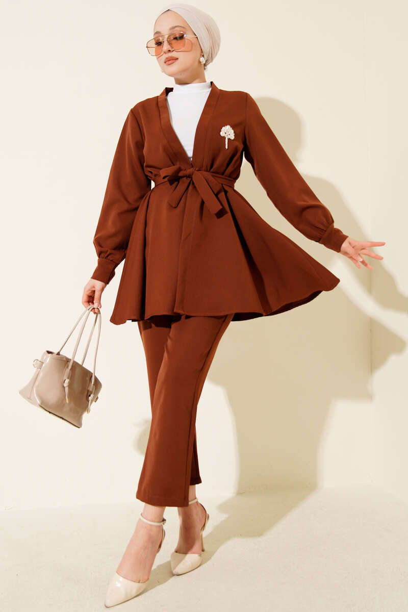 Salaş Kuşaklı Kimono İkili Takım Sarı