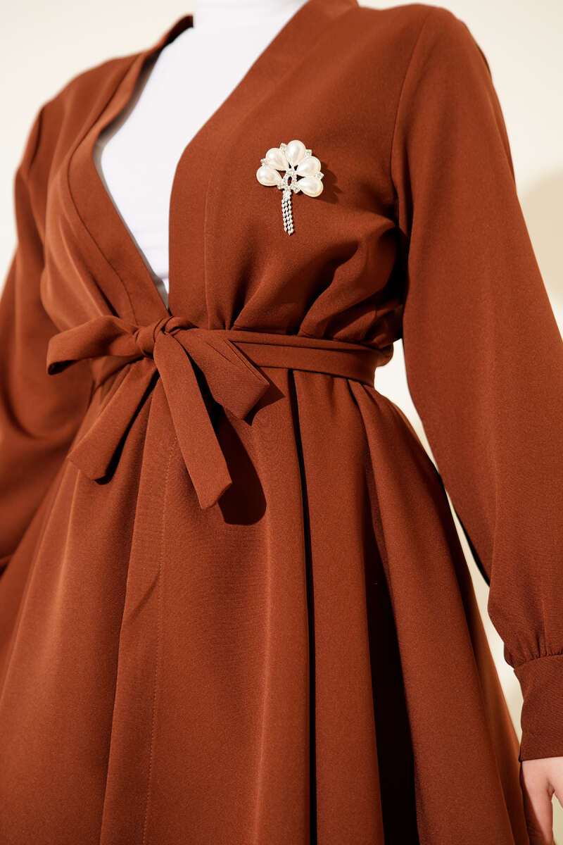Kruvaze Yaka Belden Kuşaklı Kaban Siyah