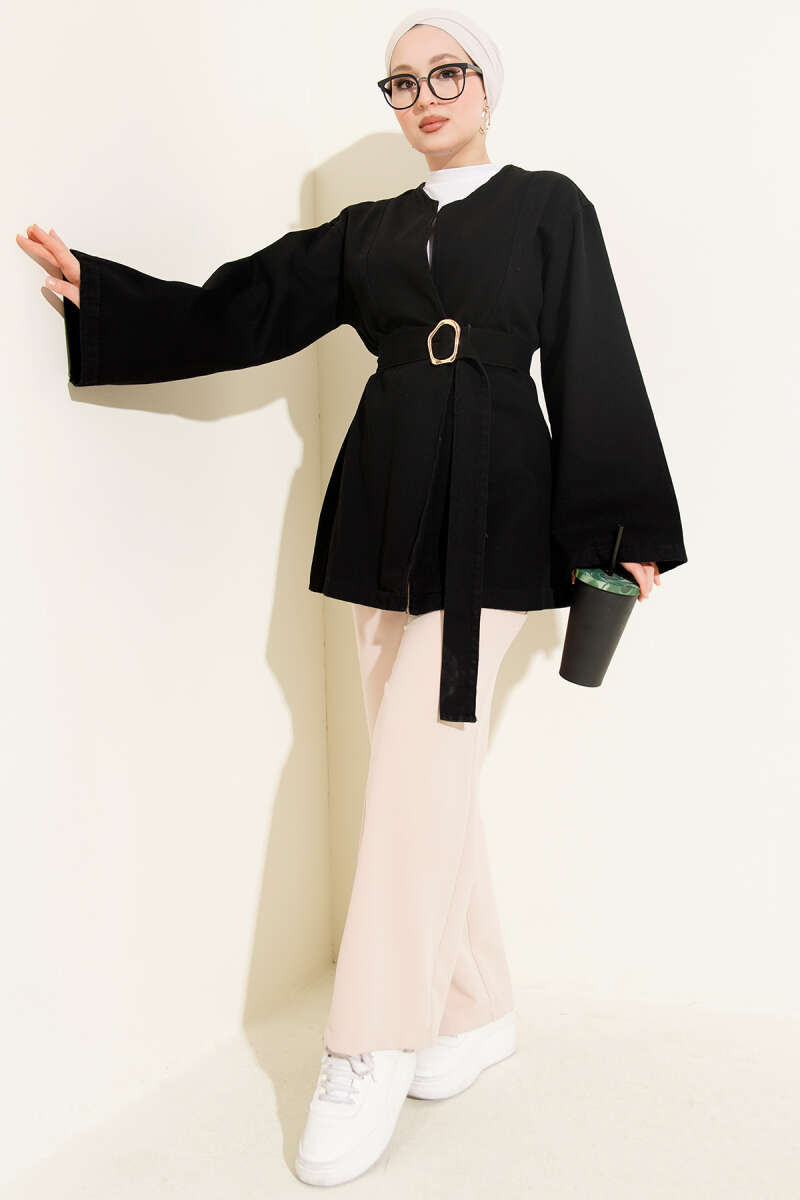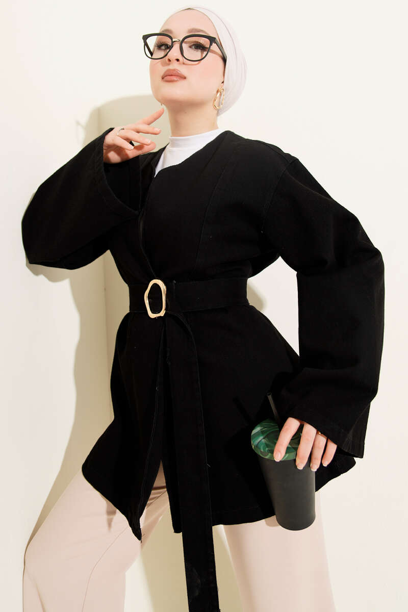 Kuşak Detaylı Kimono Siyah