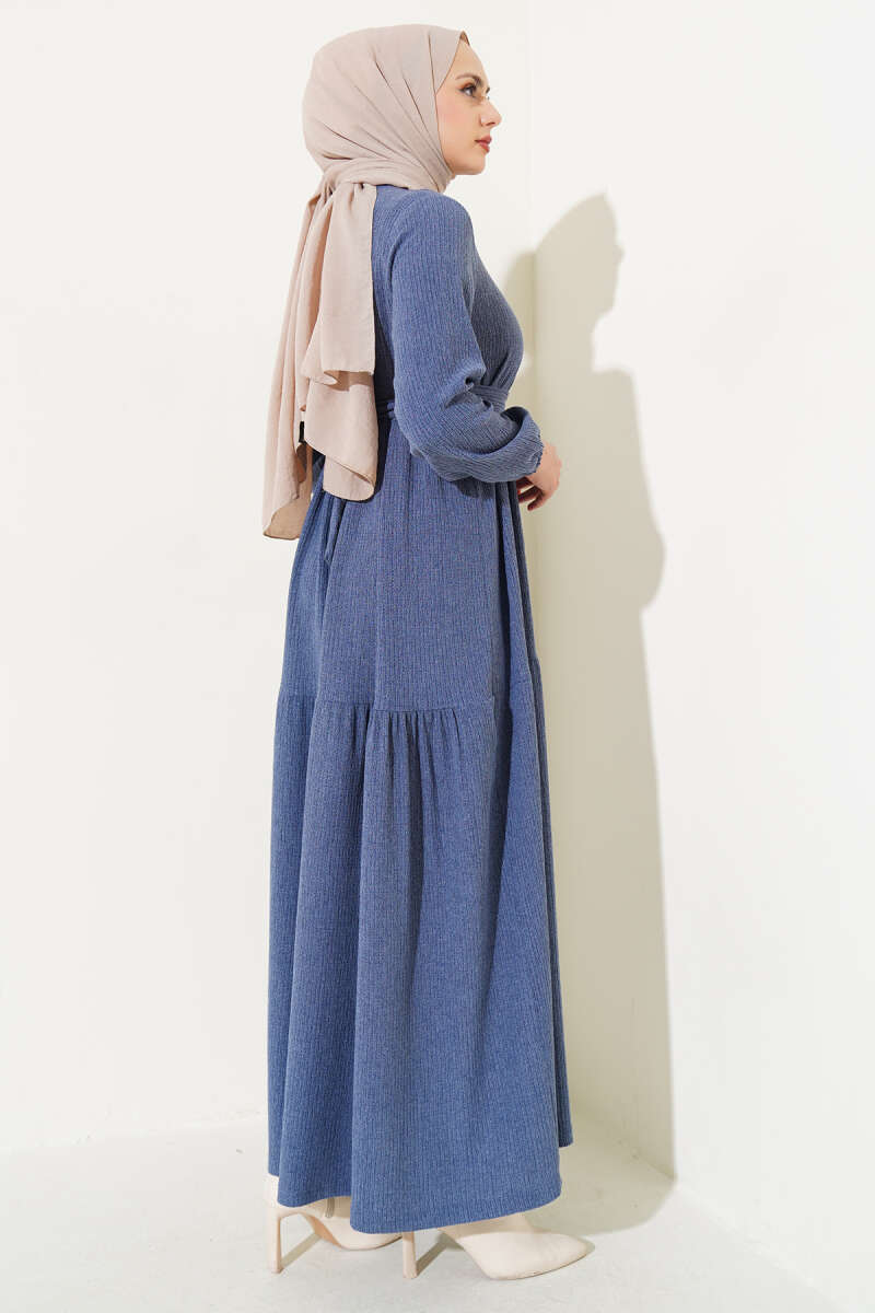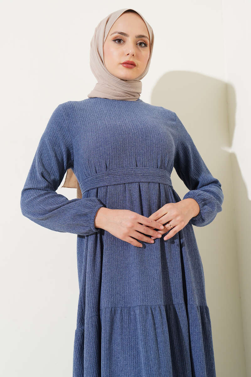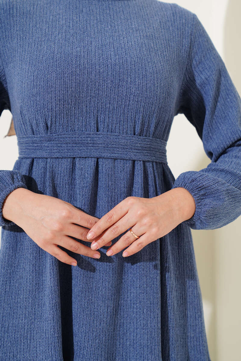 Kuşaklı Ağaç Kabuğu Elbise Sütlü Kahve