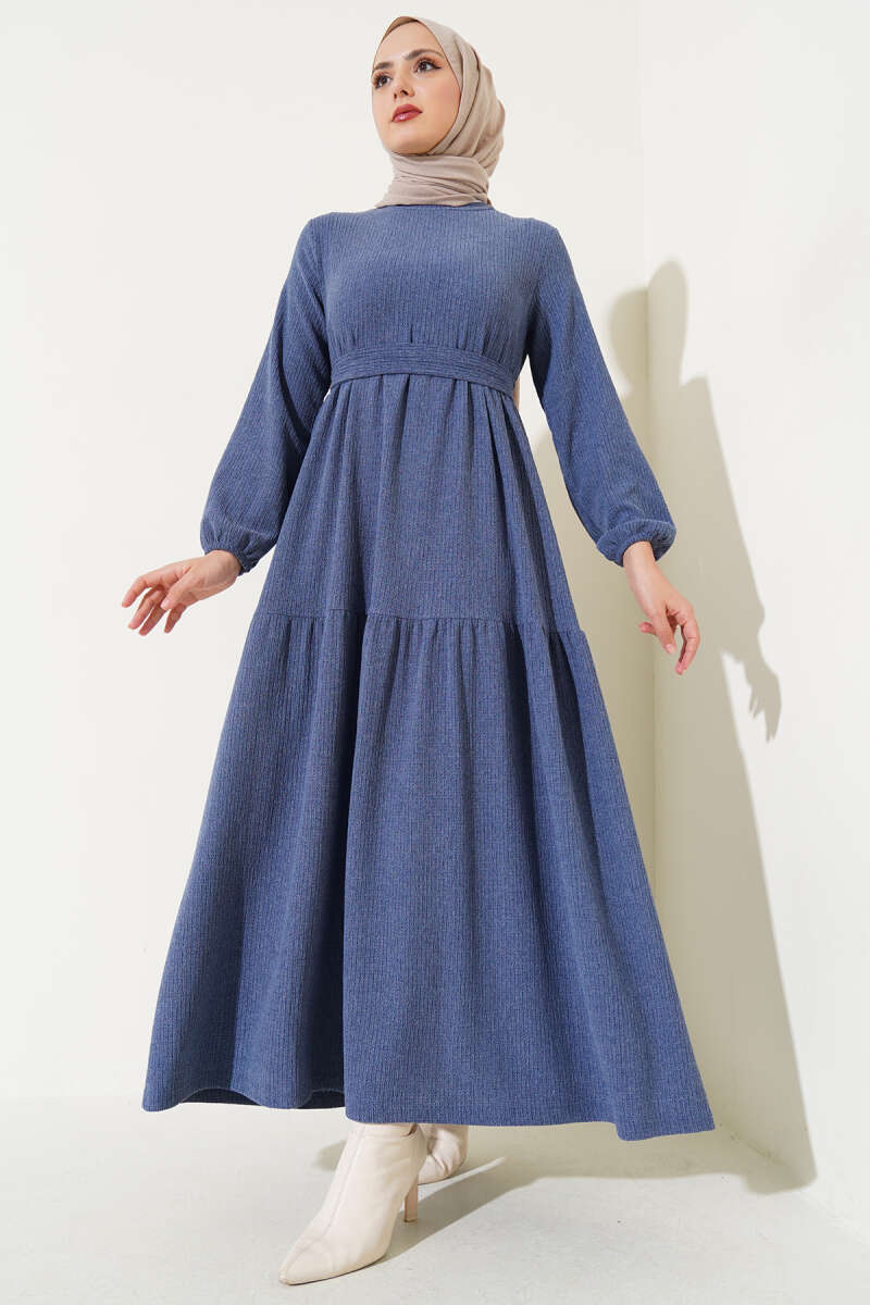 Bisiklet Yaka Yumoş Triko Elbise Bordo