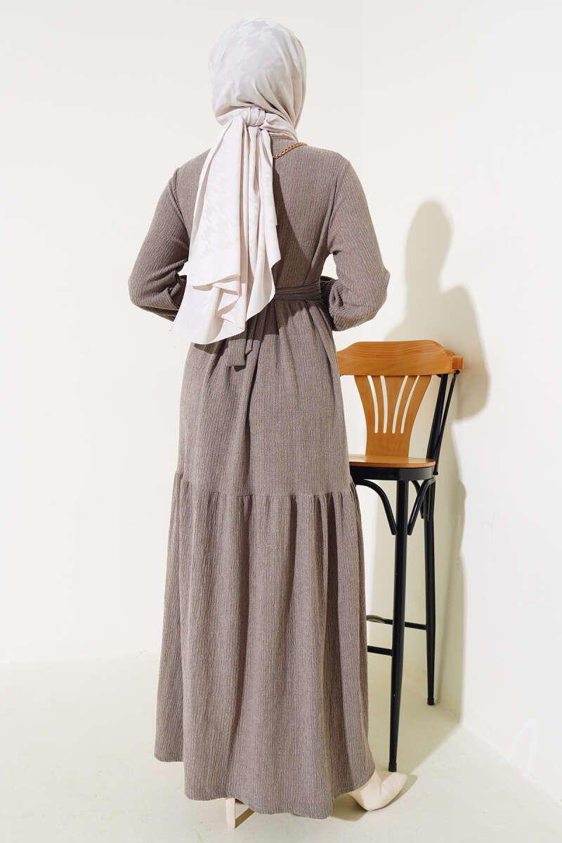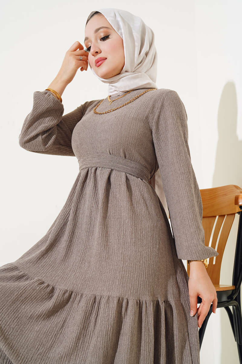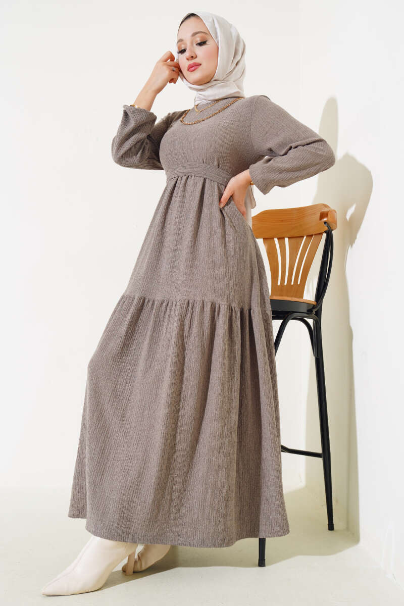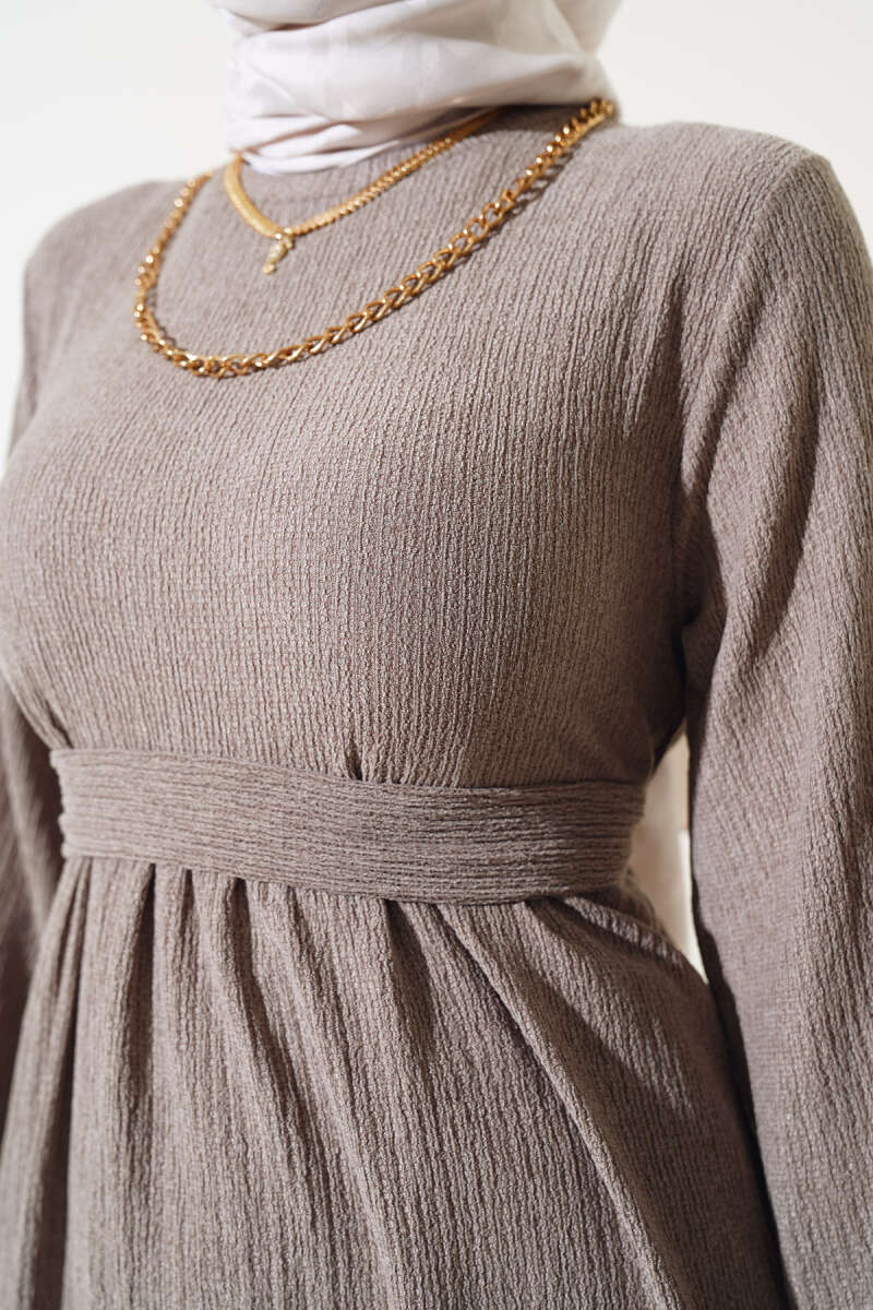 Bisiklet Yaka Yumoş Triko Elbise Füme