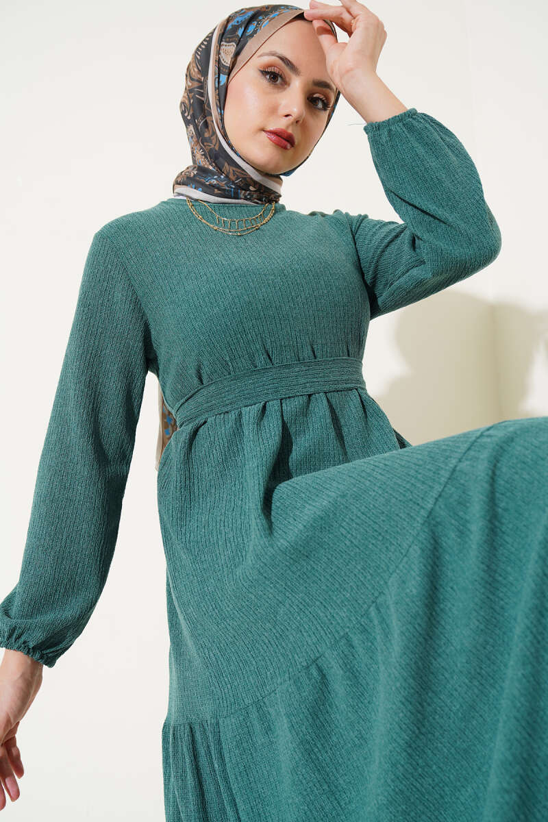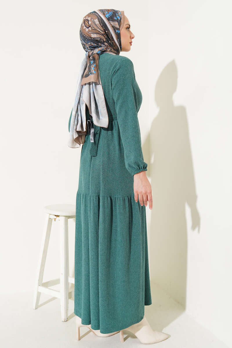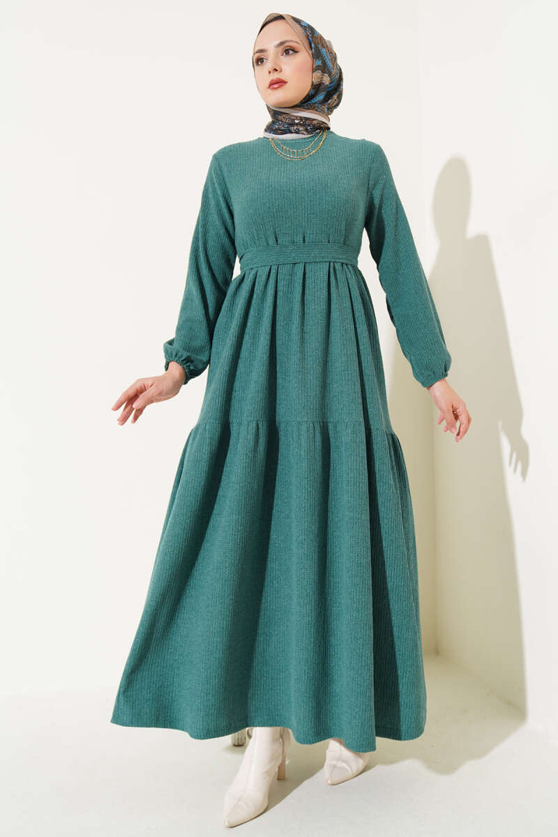 Bisiklet Yaka Yumoş Triko Elbise Bordo